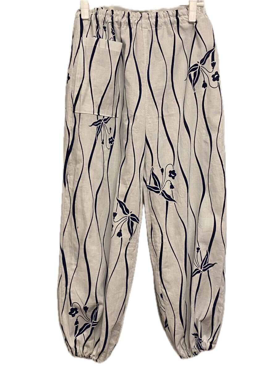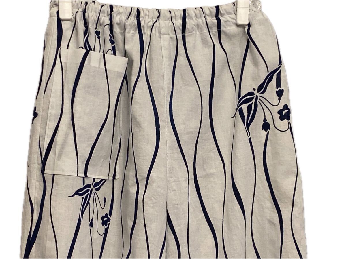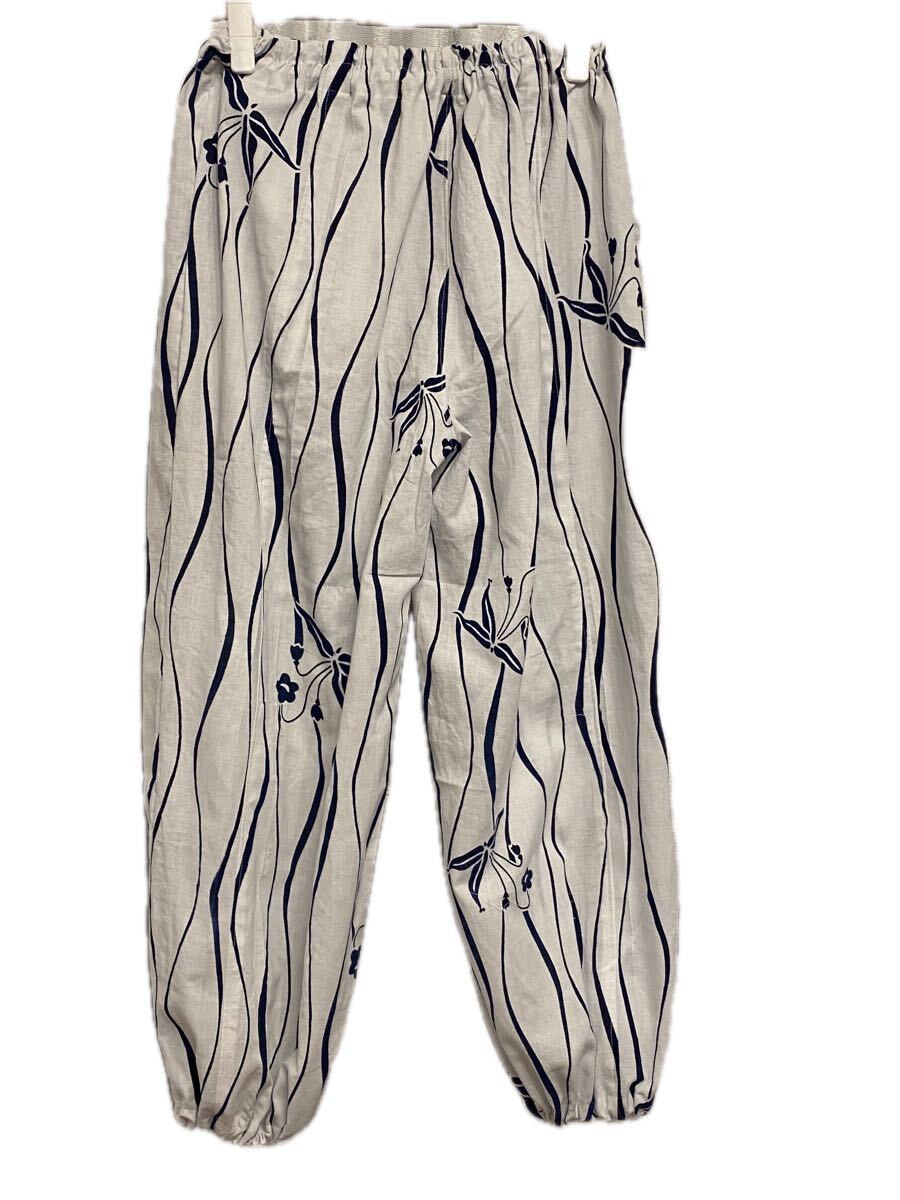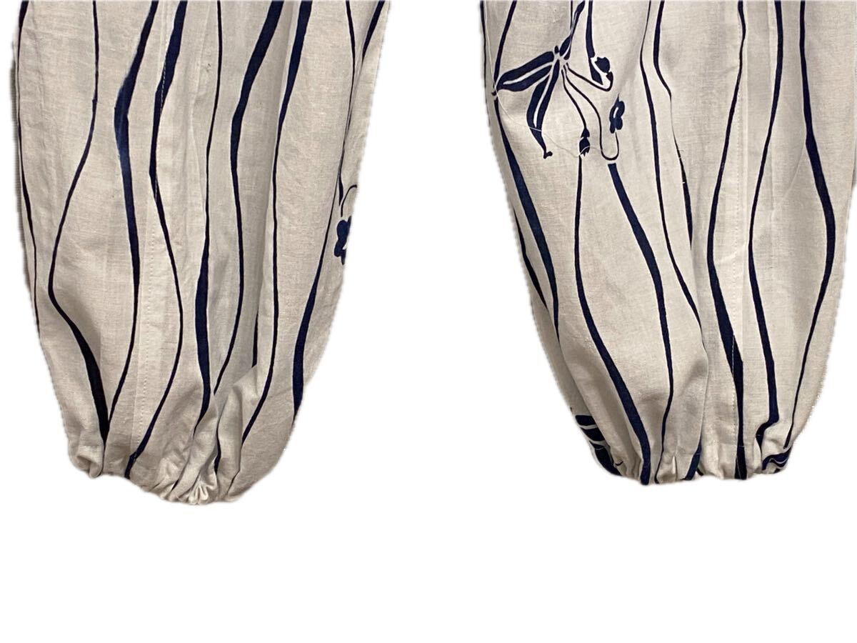 ほどき浴衣生地からモンペ風ゆったりズボンを作りました。 総丈 約91センチ 股上 約34センチ ウエストサイズ 約30センチ 伸ばして約53センチ 素材 綿100% ほどき浴衣生地 裏地はついていません。 ポケット右サイドに1個付いています。 ウエストゴム2本 裾足首1本入っています。