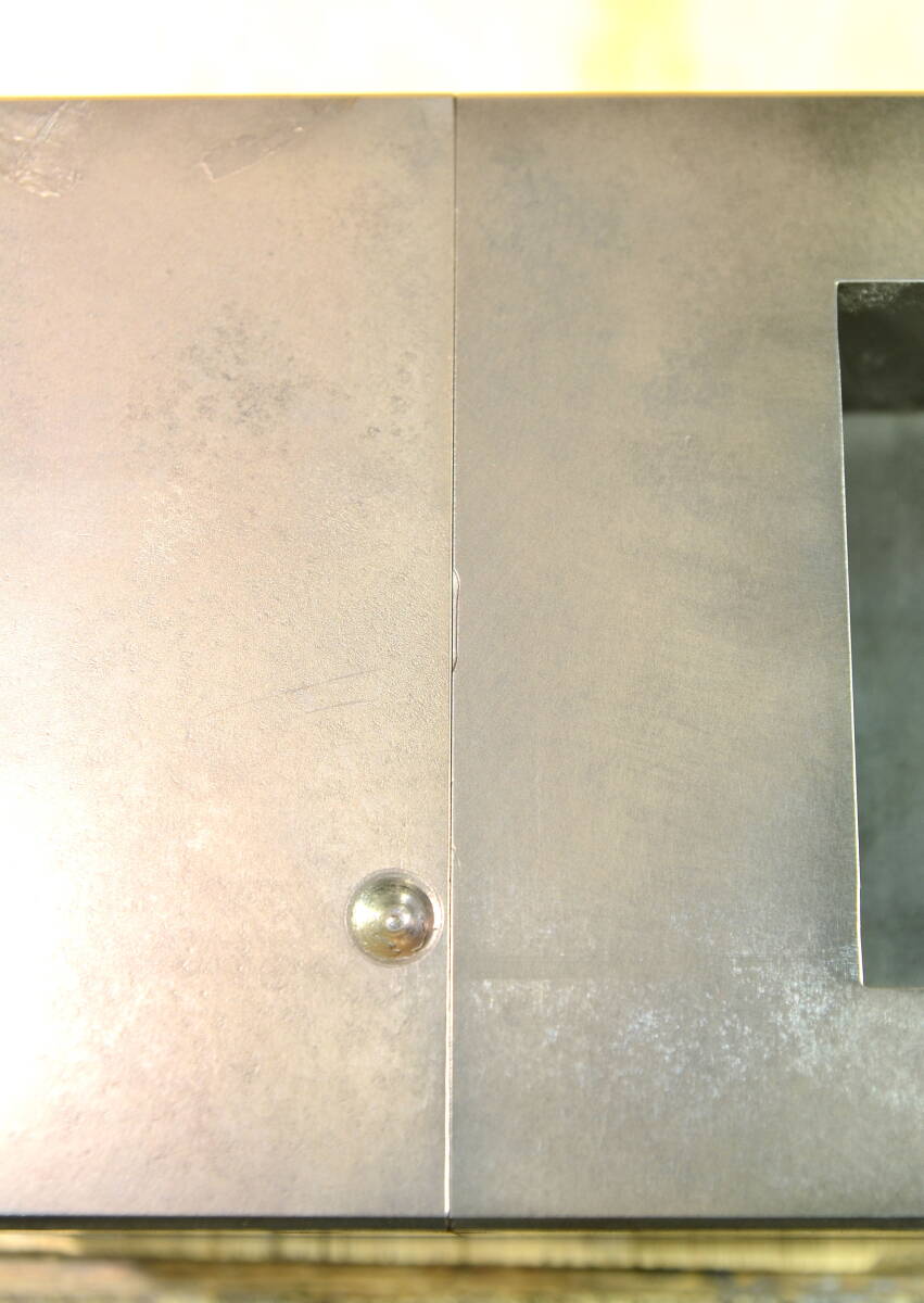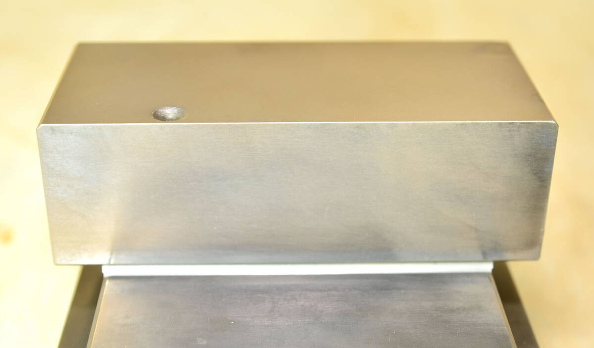口金周りに到りましては、画像を含め事細かく説明報告致します。 摘みハンドル開閉の際、口金同士が密着状態から全開迄スムーズ開閉作動します。 口金の摺合せは、口金同士を密着させた際、隙間は見られません。 口金面は、リア側上部に1発スリ痕が見られますが、全体的には綺麗な方だとは思います。 カップブラシ及び真鍮ブラシにて簡単な清掃を行っておりまして、説明画像が少し金色ぽく見えますのは真鍮ブラシ使用の為で、保管及び錆止めとして製品全体に薄くグリス等を塗っており、実際にはもう少し黒っぽく見えるかと思いますのでご了承下さい。 製品情報 日本オートマチックマシン株式会社 NP150 スペックは、すべて実測 口巾:120mm 口開:150mm 口深:40mm 長さ:330mm 高さ:90mm 摺動面高さ:50mm 横幅:120mm 摘みハンドル径:50mm 製品重量:18kg 出品商品を商品説明・写真にてご判断していただきまして、御入札の方宜しくお願い申し上げます。 |