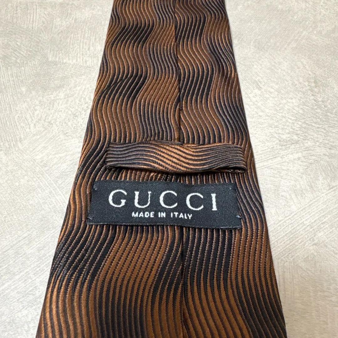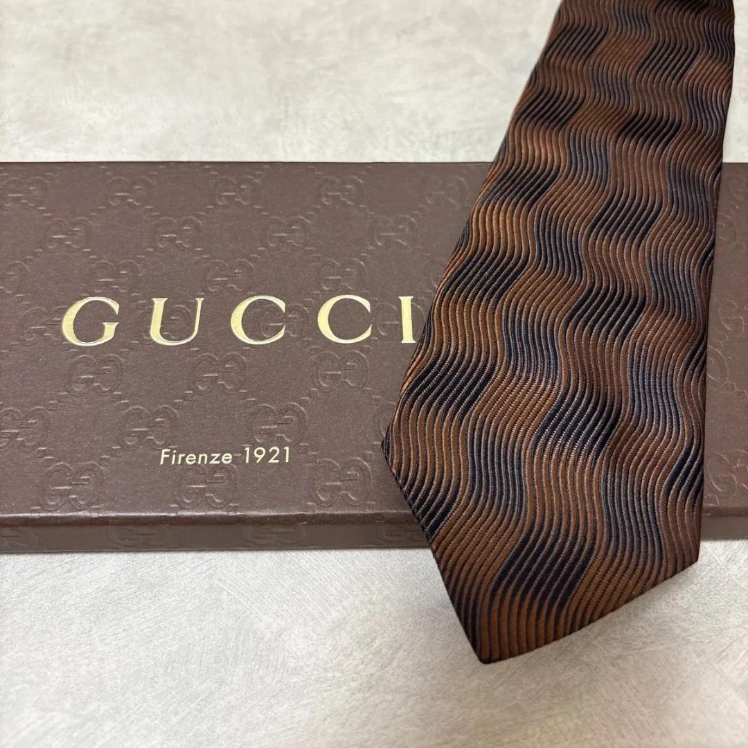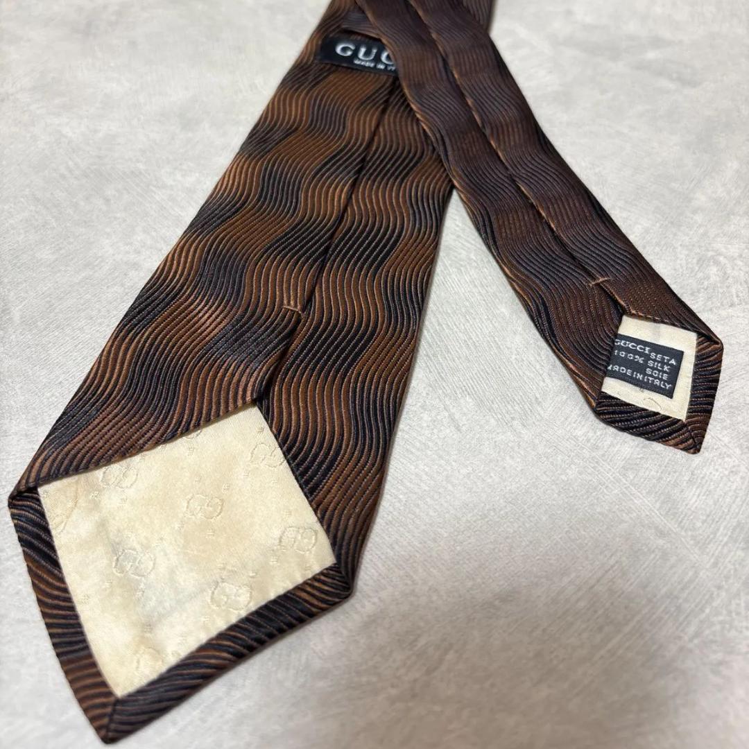 ★未使用級★ GUCCI グッチ シルク100% ブラウン ウェーブ ネクタイ 【正規品/本物保証】