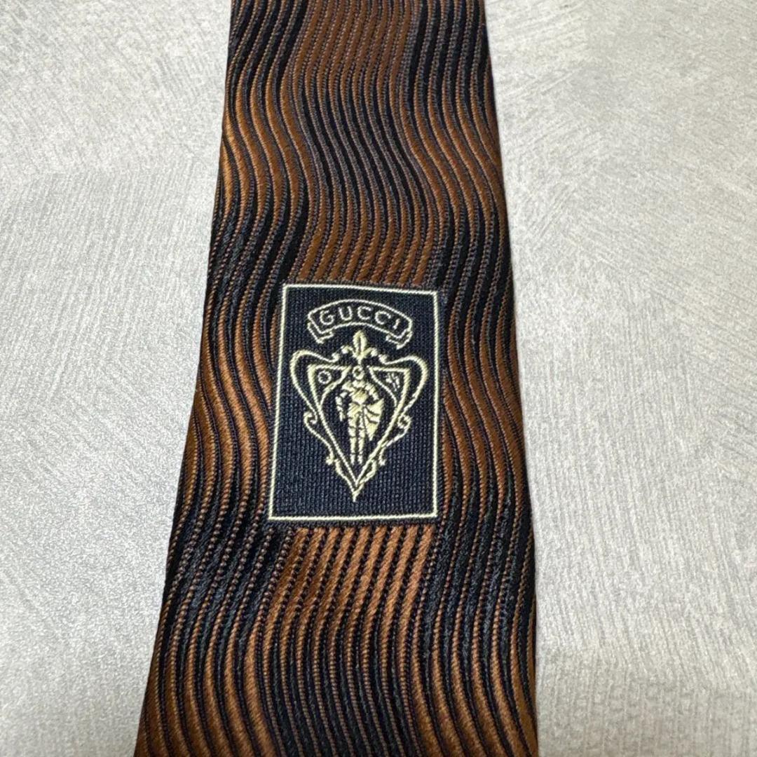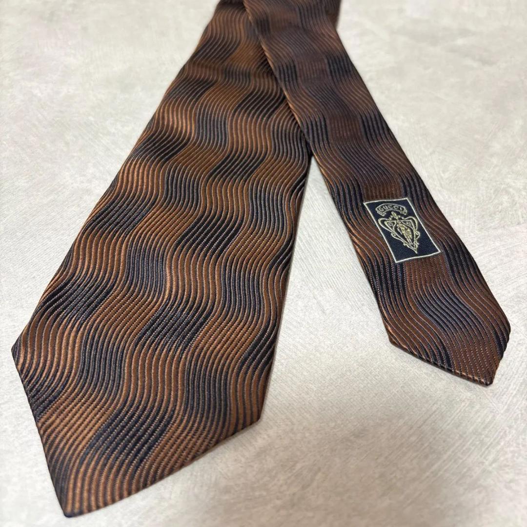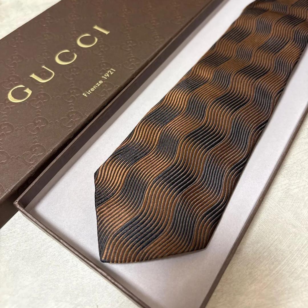 ★未使用級★ GUCCI グッチ シルク100% ブラウン ウェーブ ネクタイ 【正規品/本物保証】