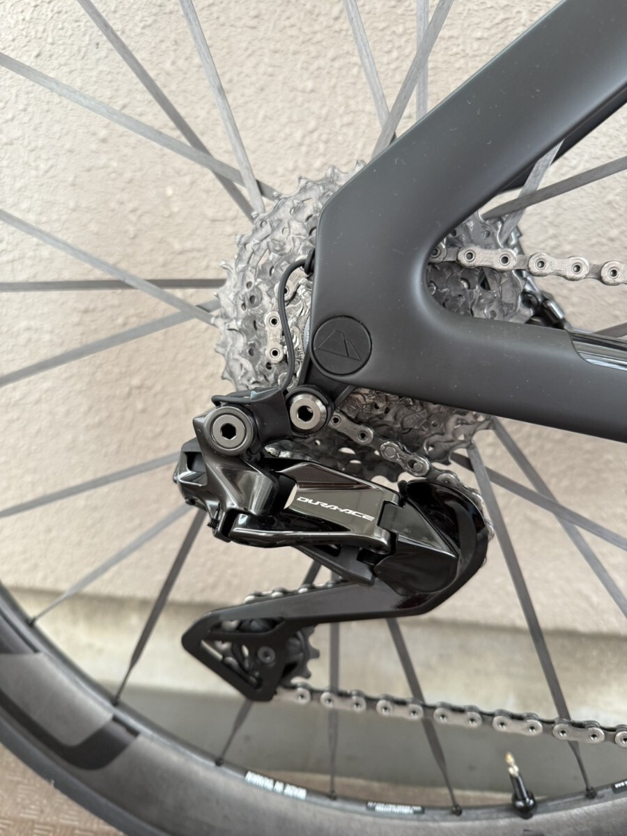 立て掛けた際に倒れてしまった為、STI 、フロントフォーク先端ににガリ傷があります。その他クランクにチェーン落ちの傷などあります。
