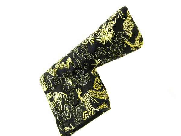 | 【パターピンタイプ】ゴルフ クラブ用 ヘッドカバー パターカバー ピンタイプ ハンドメイド ジョーゼット生地 金襴 黒系 龍柄 刺繍 2748 | |