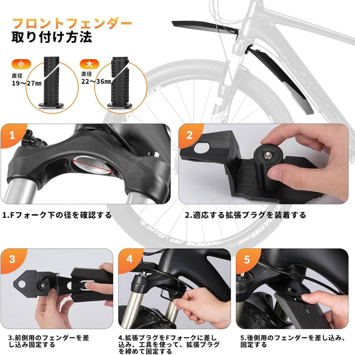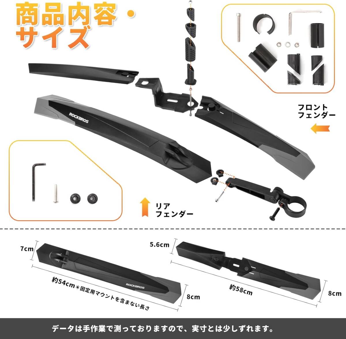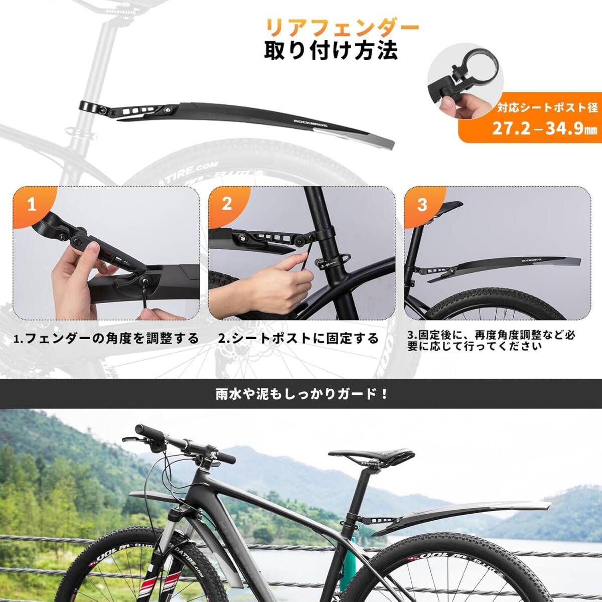 2個セット ロックブロス 自転車 泥除け クロスバイク マウンテンバイク フェンダー 26インチ以上 角度調整 マッドガード フロント