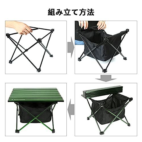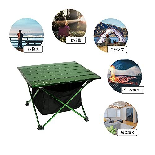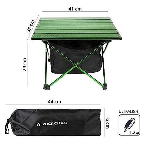 ブランド:ROCKCLOUDカラー:緑,メッシュラック付き【アップグレード版】改良された一体式のヒンジで天板を連結、従来の弾性ロープで接続されたテーブルよりもっと耐久性と安定性に優れます。またメッシュラックにアウトドアギアなど入れ込み、スベースを節約可能。