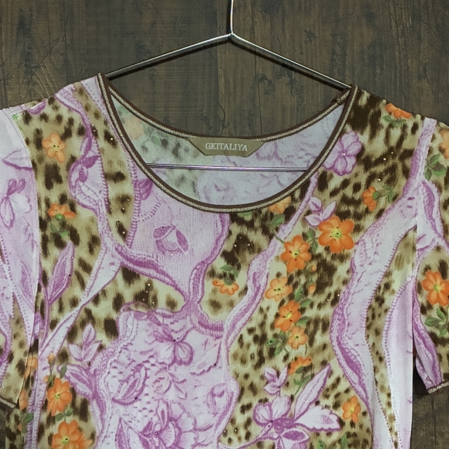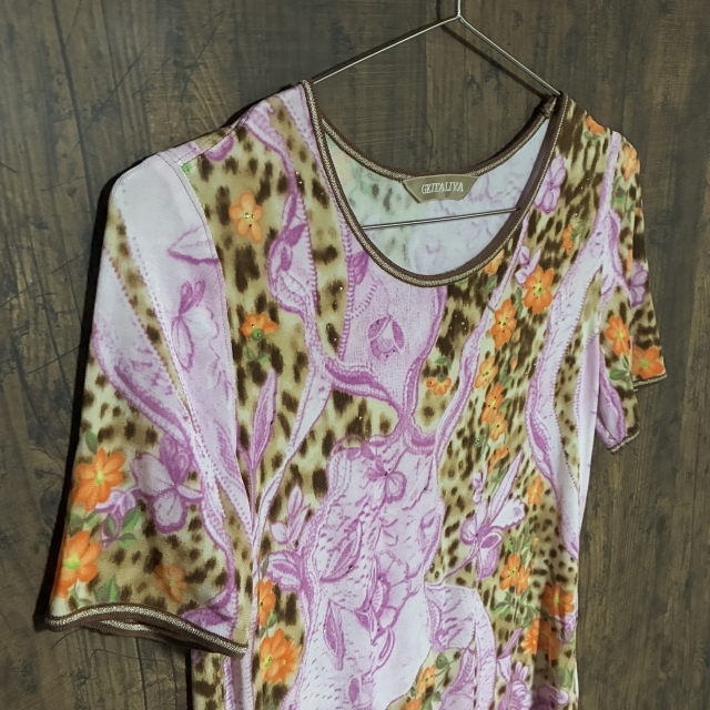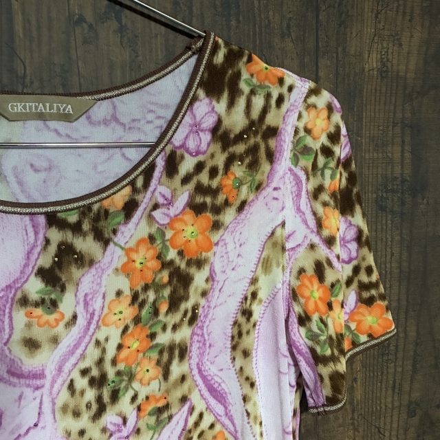 C40◇GKITALIYA | GKイタリヤ 総柄Tシャツ ピンク×マルチカラー レディース 9サイズ 中古品