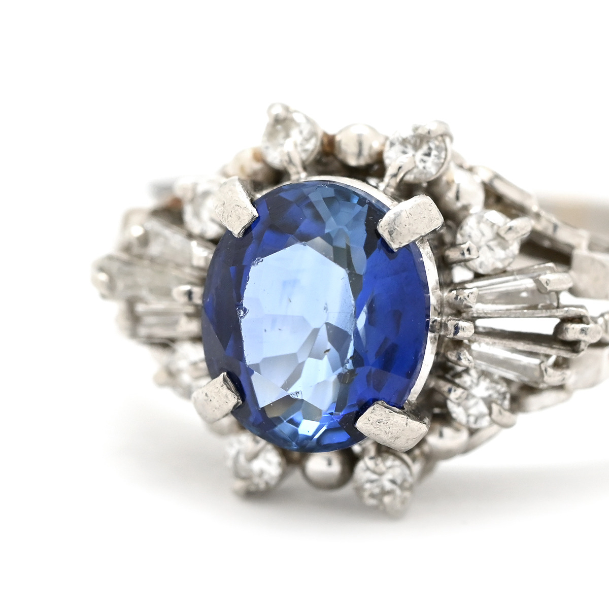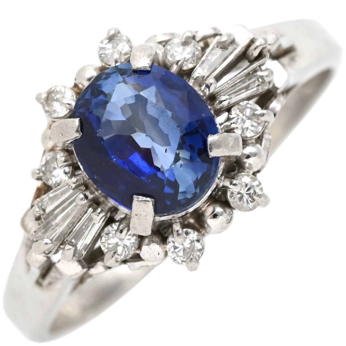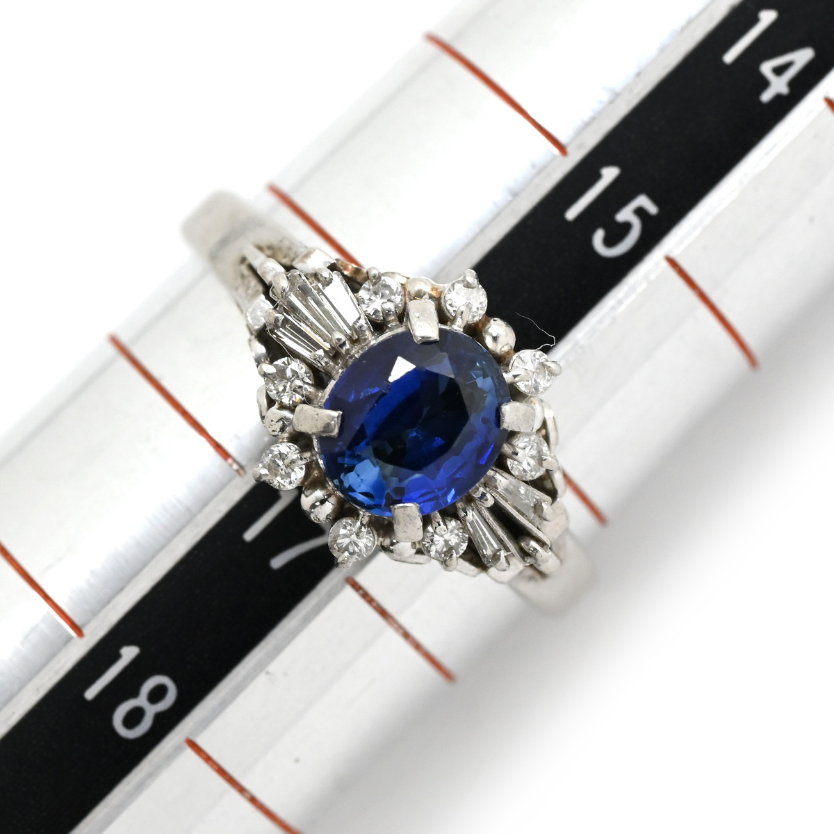 リング 指輪 ブルーサファイア ダイヤリング Pt900 シルバー 青 中古