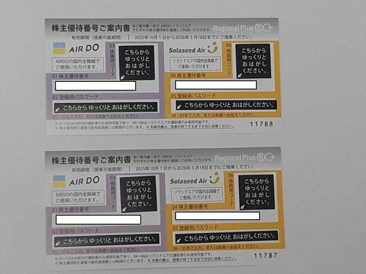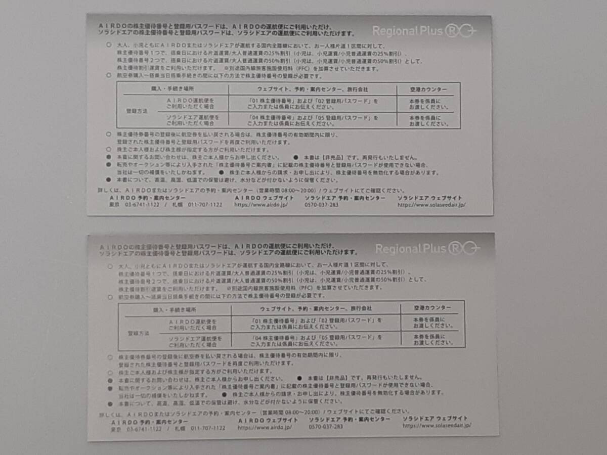 | ★☆⑥【未使用】エアドゥ AIR DO ソラシドエア Regional Plus 株主優待券 2025年10月1日~2026年5月18日 2枚☆★ | |