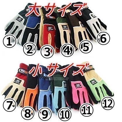 防寒 手袋【手の平幅11.5cm】2重フリースで暖かい♪男女 グローブ アウトドア トレッキング バイク スキー 釣り 通勤 通学 自転車【L】②