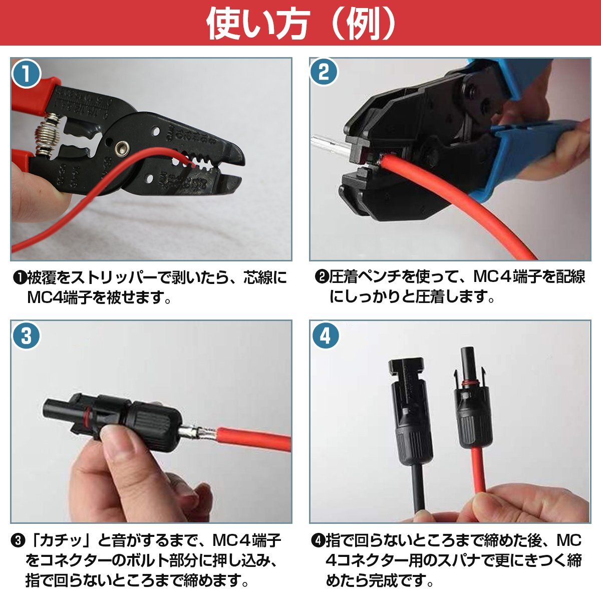 圧着ペンチ、MC4コネクター用スパナ、ストリッパー、MC4端子が
