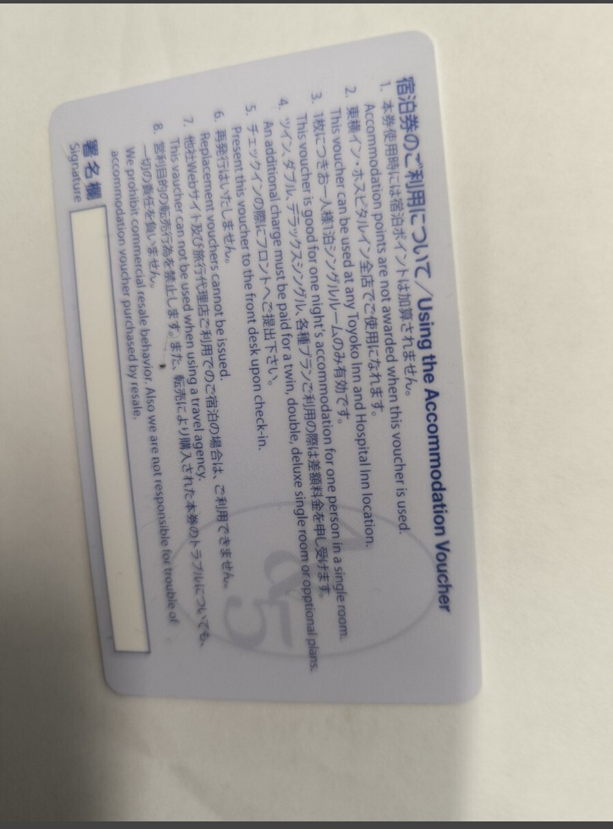 東横イン全国無料宿泊券2枚です。