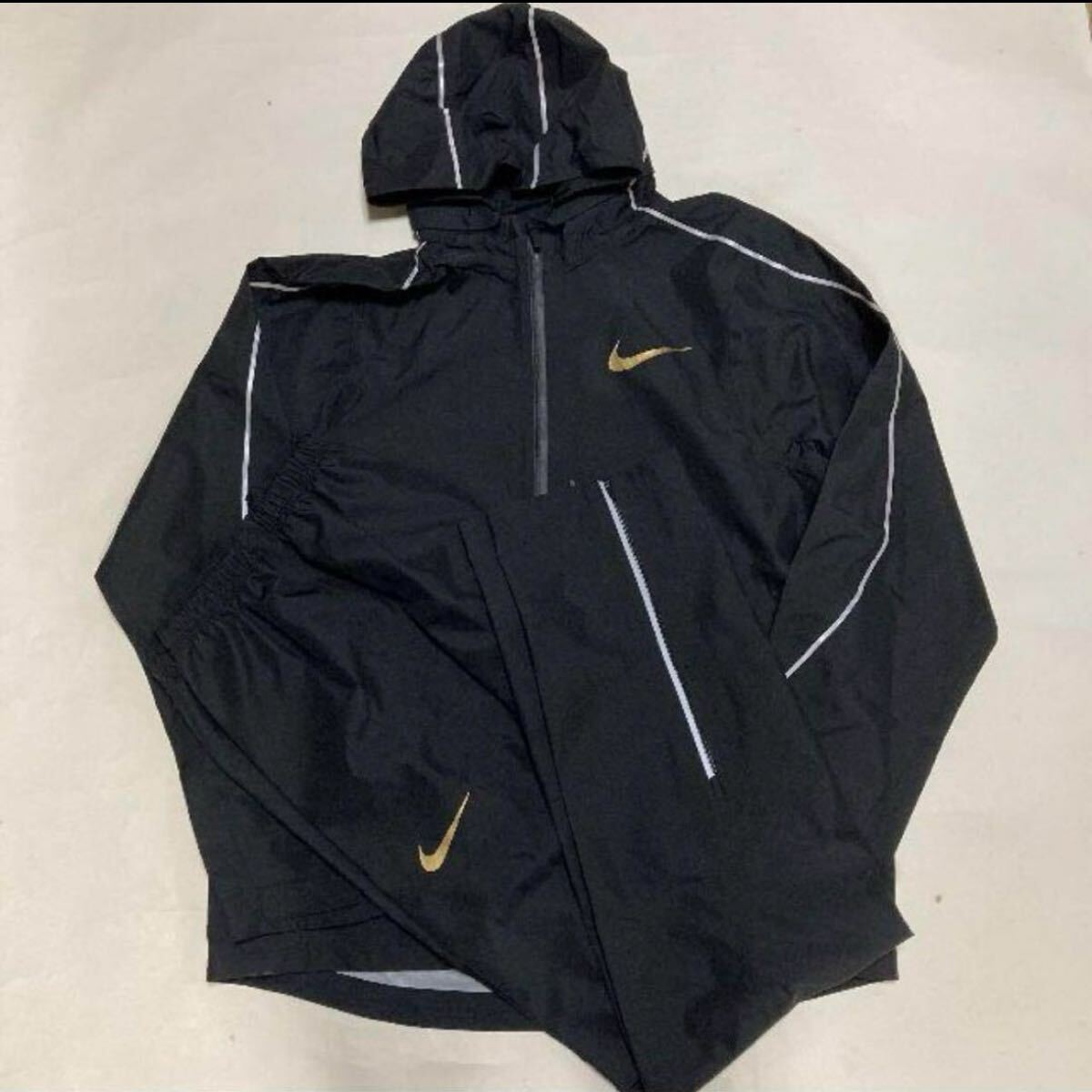 プロエリート 陸上 競技 ナイキ ブラック フーディ パーカー ジャケット NIKE ランニング 黒 残少 ウィンドランナー セットアップ