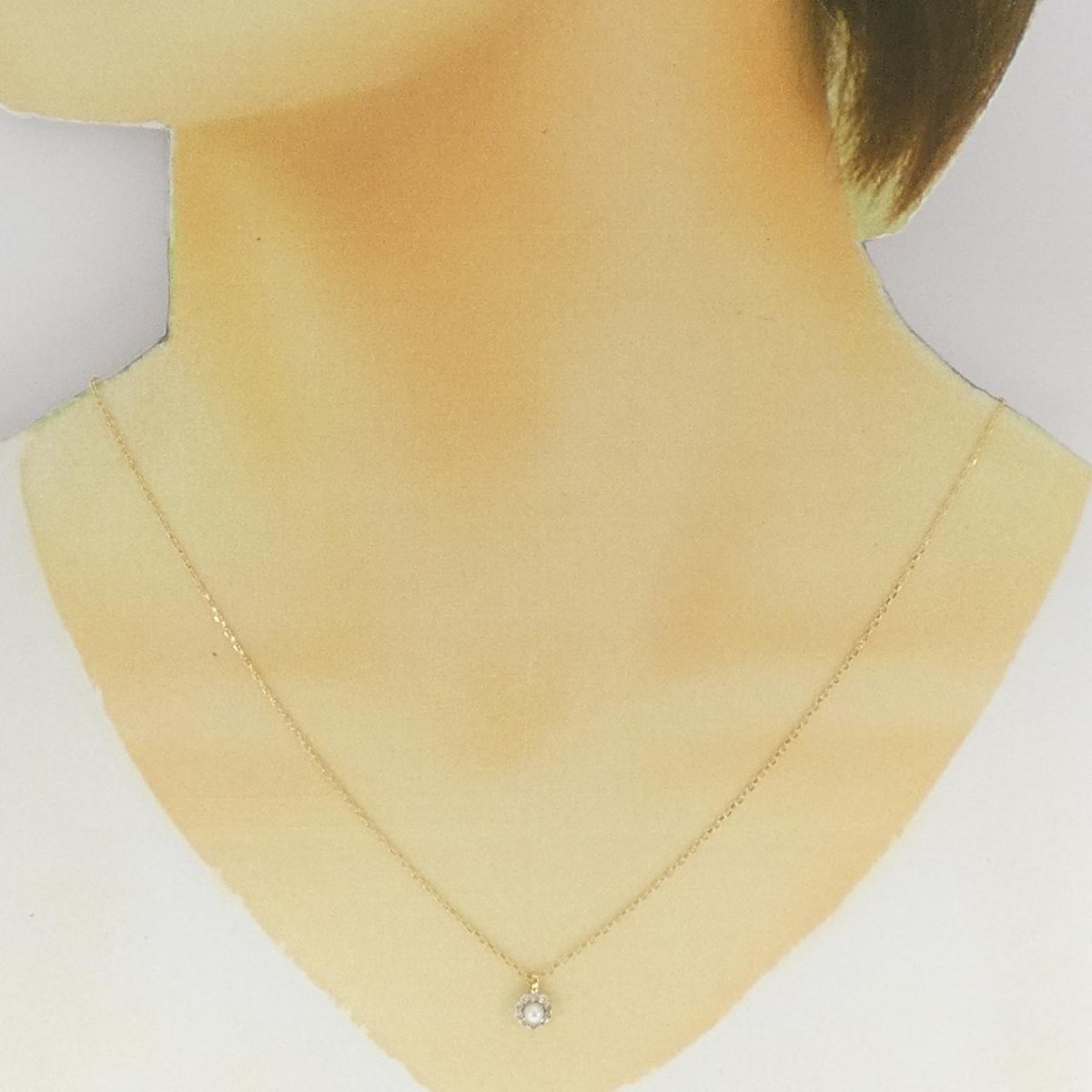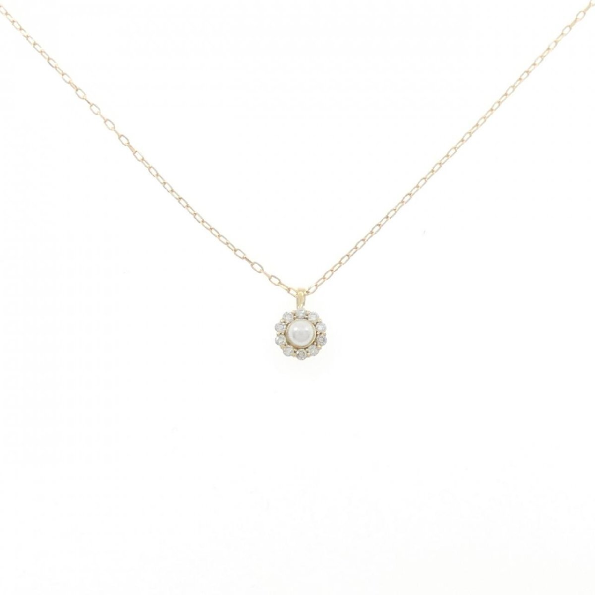 滑らかで上品な光沢のアコヤパールに煌めくダイヤモンドが囲むネックレス。華奢なデザインが胸元を美しく引き立てます。