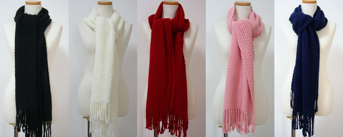 主に百貨店や専門店で取扱っているふんわり手編み風のショール、マフラー、ひざ掛けです。 なお、一点一点の商品を大切に袋入りの状態にて保管しておりますので多少の折りシワにつきましてはご了承下さいませ。