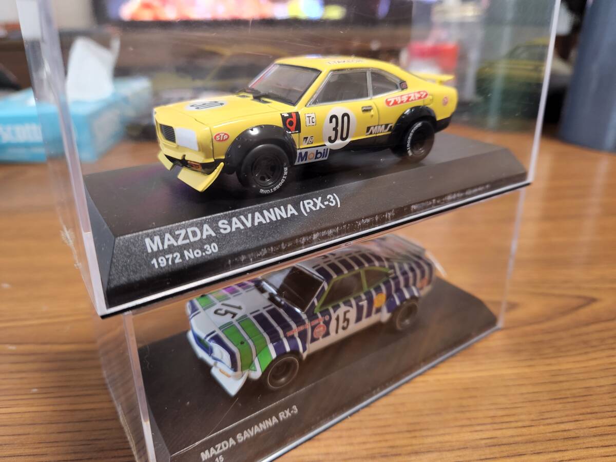 マツダサバンナRX3.2台の出品になります。ゼッケン15の商品にクリアーケースにヒビがあります。他はキズはありません。送料は着払いでノークレームノーリターンでお願いいたします。