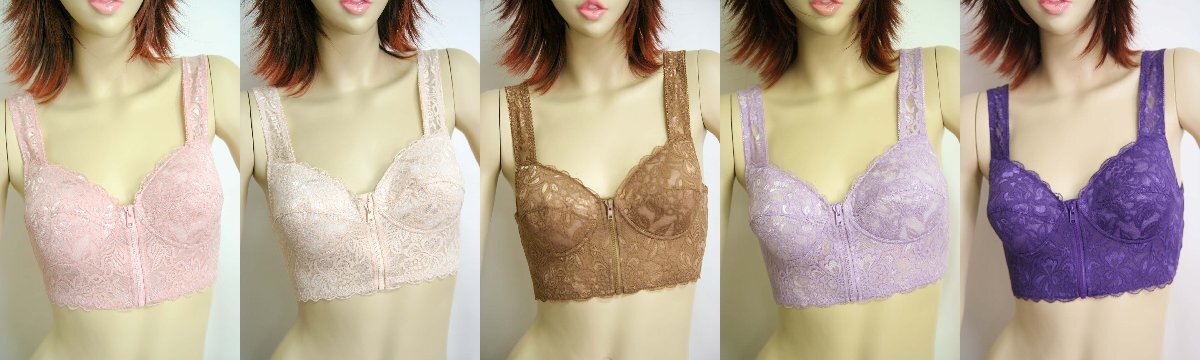 送料無料◆超お得5色組◆綿95%◆前開き◆立体カップ◆セミロングブラジャー(M)◆脇高パターン◆さわやか綿混◆ノンワイヤー◆背筋きれい