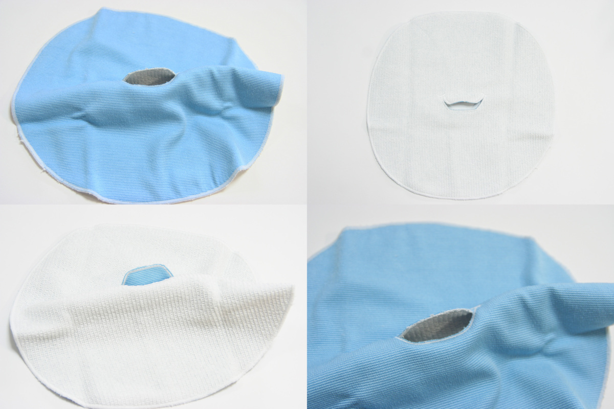 ・水色の表側は綿混素材で、白色の裏側は素肌に優しい肌触りとなっております。