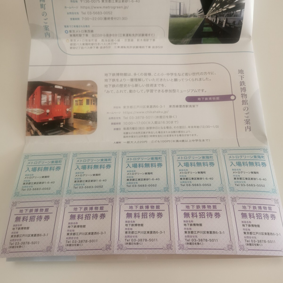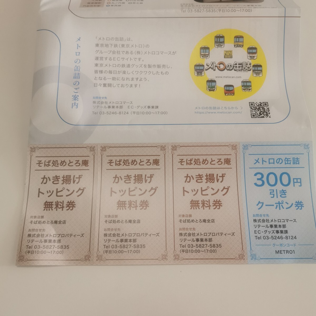 かき揚げトッピング、メトログリーン東陽町、地下鉄博物館 優待券です。