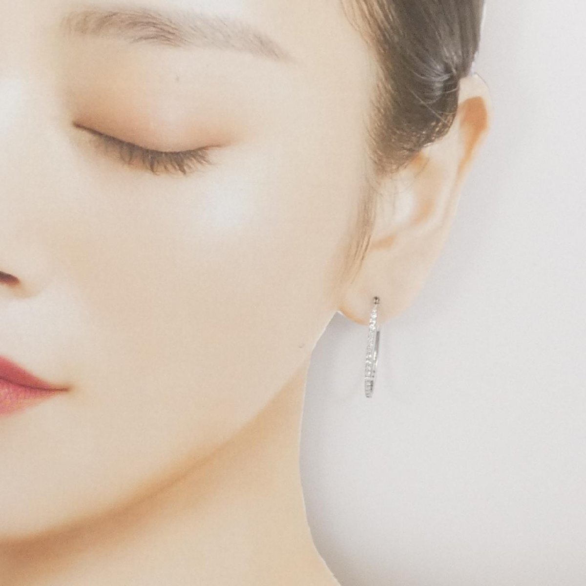 連なるダイヤモンドが繊細に煌めくピアス。顔の印象を明るく魅せてくれそうです。