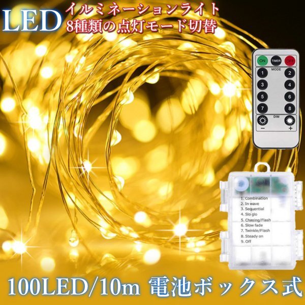 【送料無料】イルミネーション ライト ストリングライト 10m 100 LED 乾電池電源式 リモコン付 点滅モード8パターン クリスマス パーティー インテリア