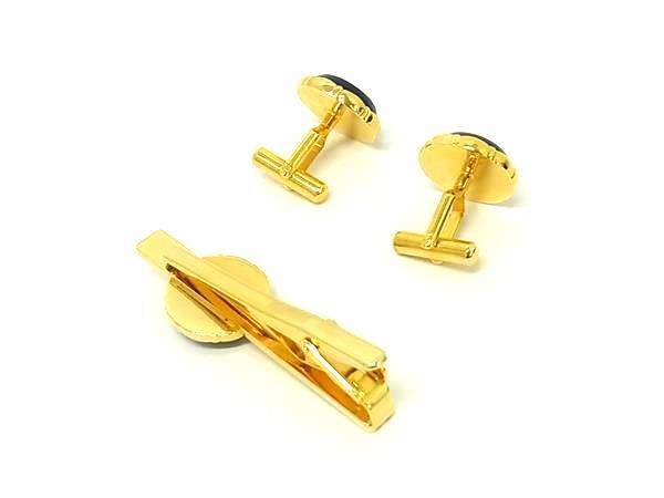 ■美品■ BEVERLYHILLS POLO CLUB ビバリーヒルズ ポロクラブ カフスボタン タイピン 2点セット ネイビー系×ゴールド系 DK3708