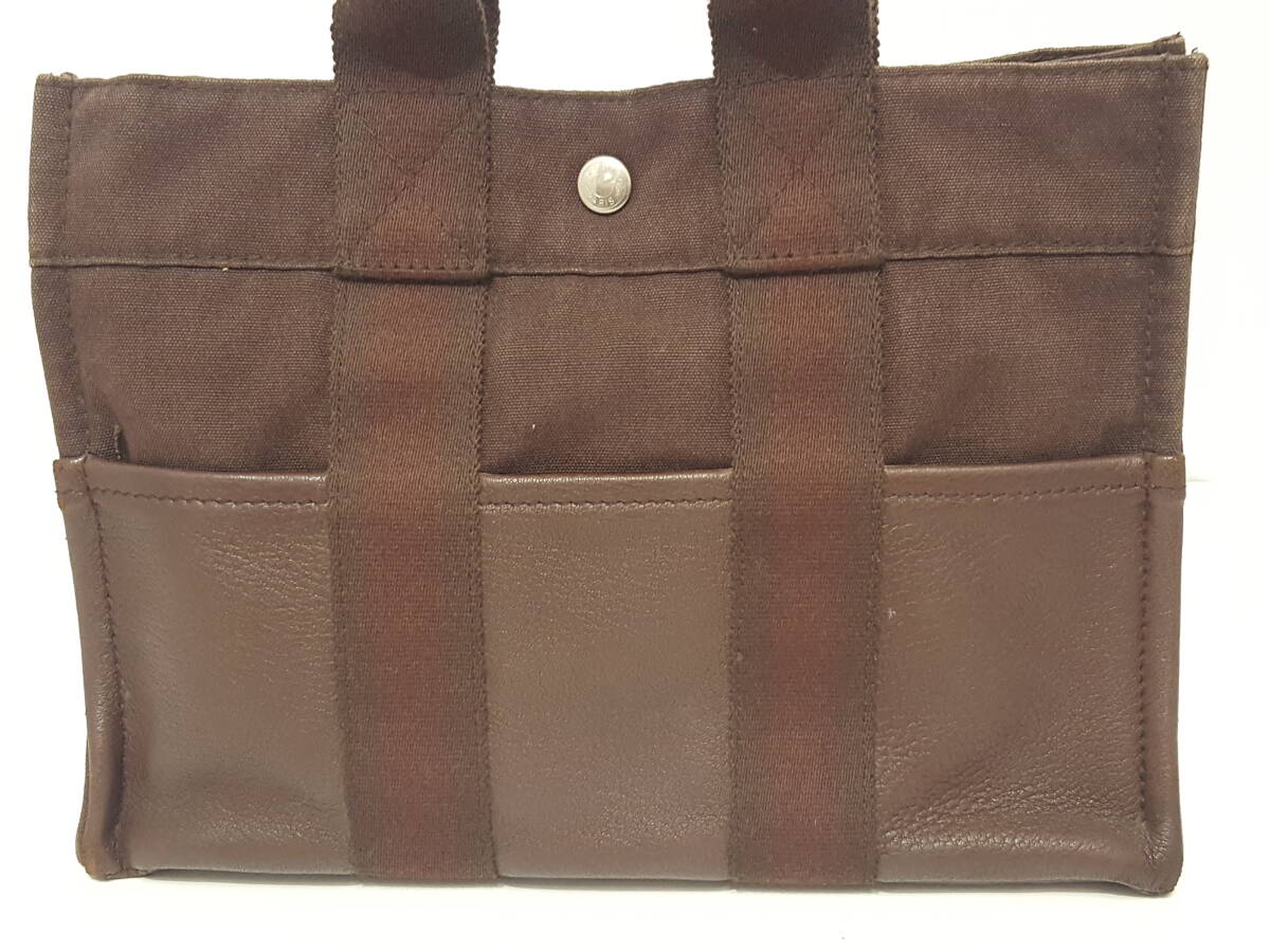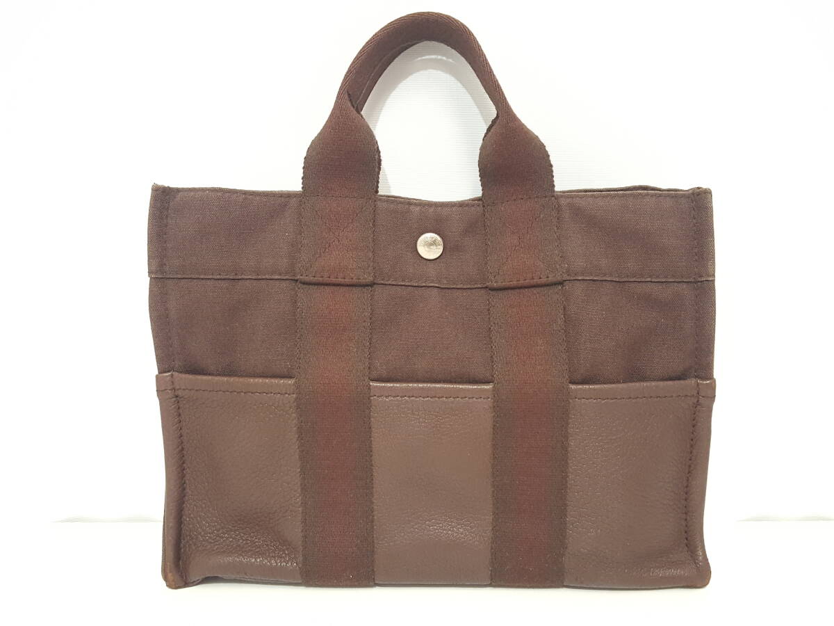 ※離島など別途中継手数料がかかる地域が御座います。 その場合はお振込みを追加でお願いする場合が御座います事、 事前にご了承の程、宜しくお願い致します。 ※送料には業者指定された運送用梱包資材代が含まれます。 専用BOX、段ボール梱包以外での補償は対象外となります。 [商品名] 1円スタート HERMES エルメス フールトゥ トートバッグ [サイズ] 高さ約22cm, 横約30cm, マチ約8cm, 持ち手長さ約23cm [素材] 本革×コットンキャンバス [カラー] ブラウン系 [仕様] ドットボタン開閉仕様 ファスナーポケット×1 フリーポケット×6 [状態] 底面の四つ角にスレ、ハガレ箇所、 全体に汚れ、キャンバス部分に若干の色あせと毛羽立ち、 金属部分にキズとくすみが御座いますが、その他は良いと思います。
