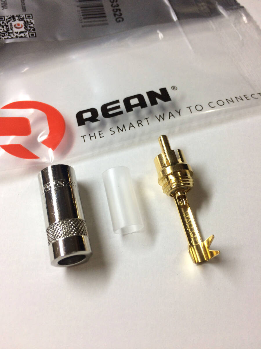 RCAプラグはREANのNYS-352Gを、アース線のピンはRCAプラグのプラスのピンを流用して制作しています