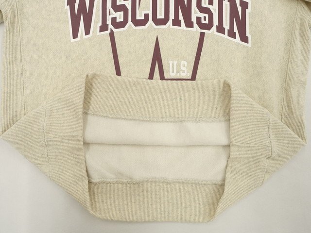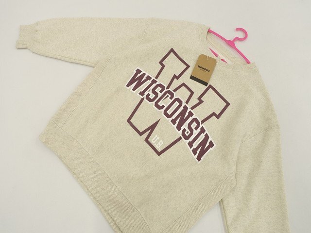 長袖 クルーネック 裏起毛トレーナー 150 アイボリー地 ブラウン×ホワイト 英字プリント