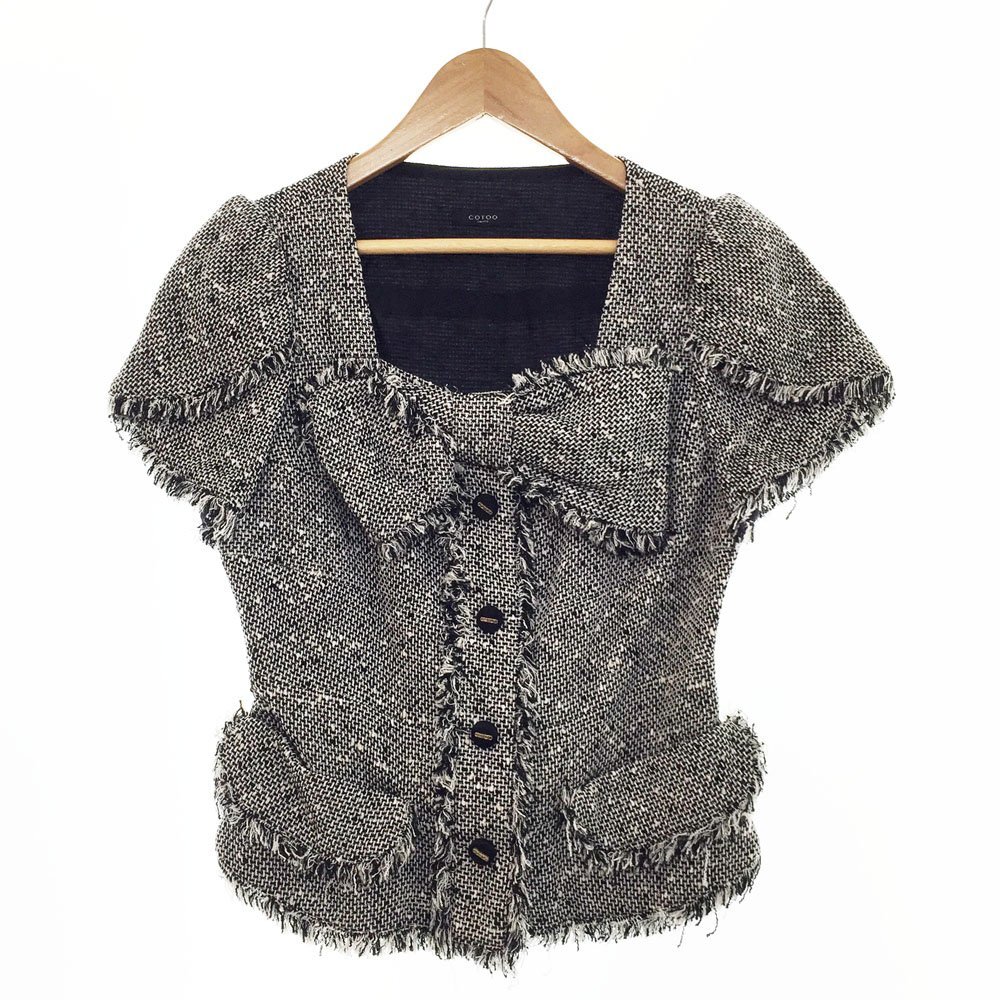 コメント | コトゥーは、ハロッズなどのデザイナーを歴任した林秀三が、2007年に発表した日本のブランドです。株式会社三陽商会の取り扱いです。 半袖のツイード生地のジャケットです。フロントに付いた大きなリボンがポイント。生地はラメの入ったツイード生地です。春から秋まで長く活躍します。品質表示が手書きされている為、サンプル品と推測されます。 状態はUSEDです。使用感はありますが、目に付く汚れやキズはありません。全体的にキレイです。ご理解のある方の入札をお待ちしております。 |