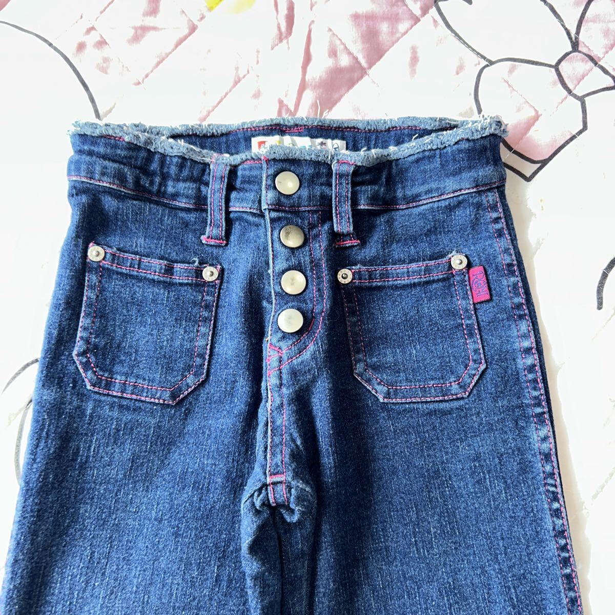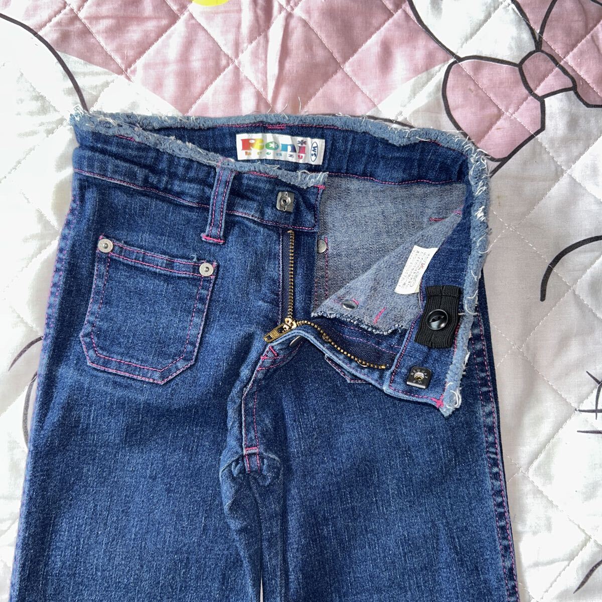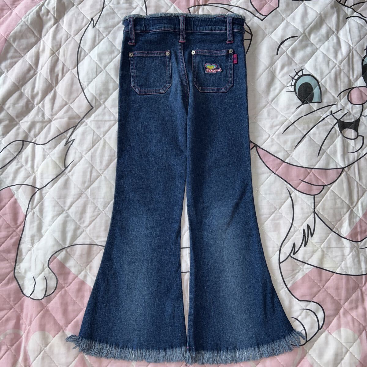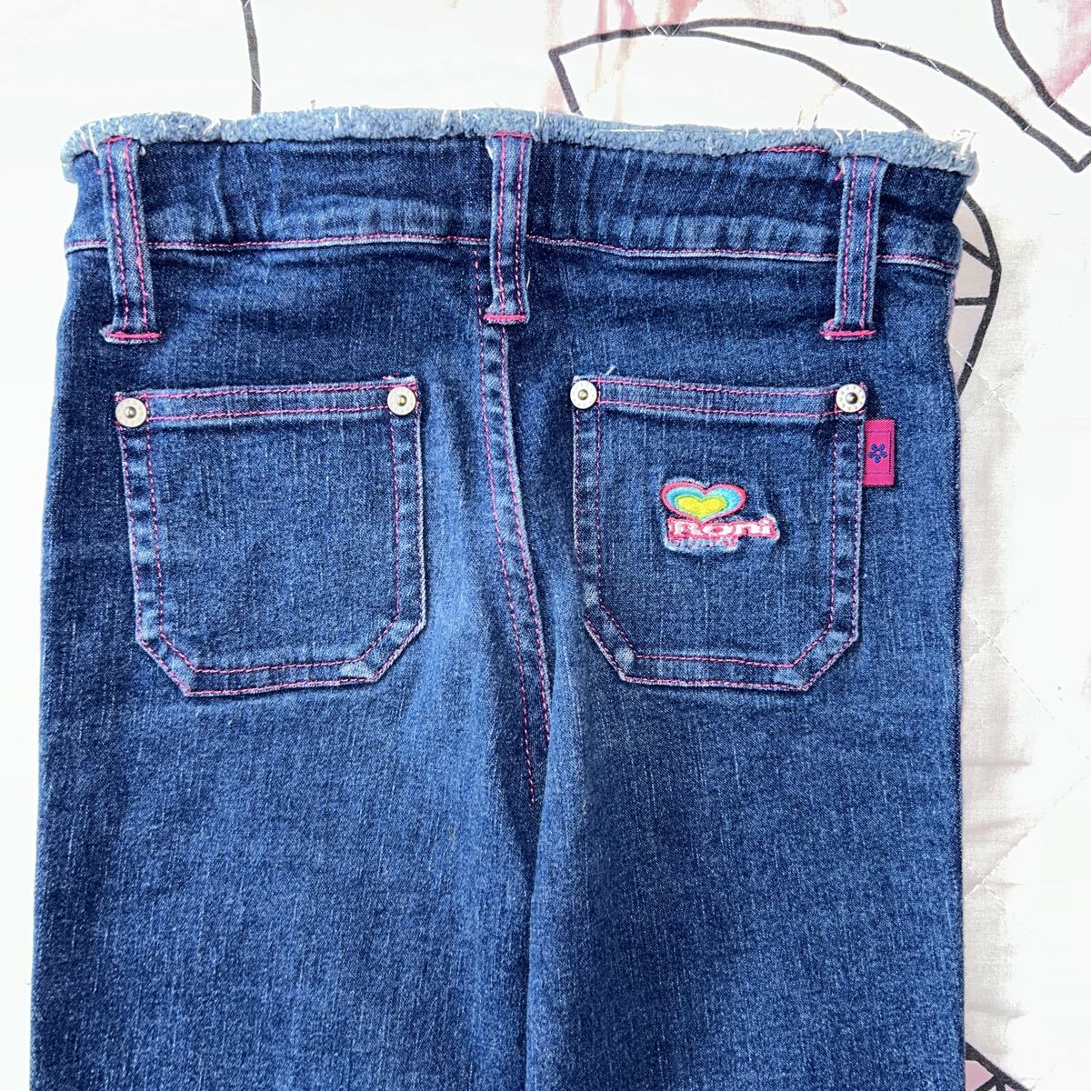 RONIロニィ ウエスト切りっぱなし 裾フリンジ ジーンズ デニム SM120 アジャスター付き。