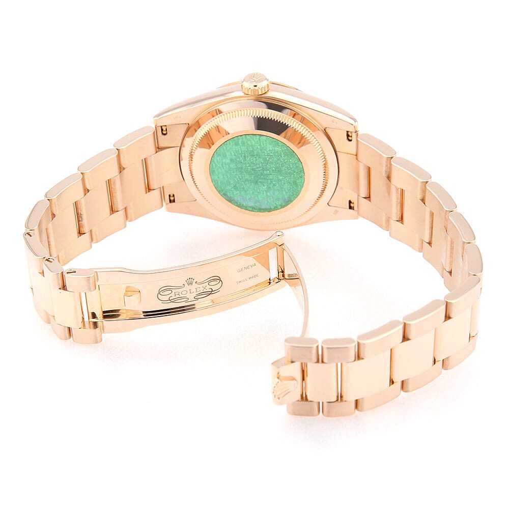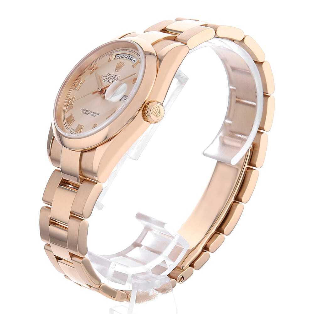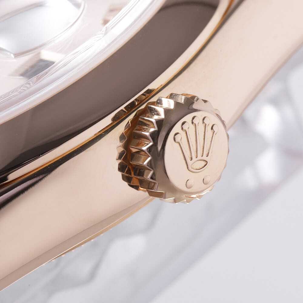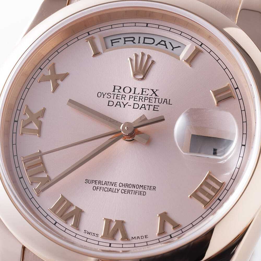 | モデル情報 | ロレックスの最上級ラインとして1956年に誕生したハイクラス・コレクションデイデイト。高級素材のみを使用しているモデルであり「富と成功の証」とも言われています。こちらはケース・ブレスレットにピンクゴールドを使用した華やかなモデルです。イエローゴールドに比べ落ち着いた印象を与えます。ドレス系ロレックスの頂点にふさわしいモデルです。 |