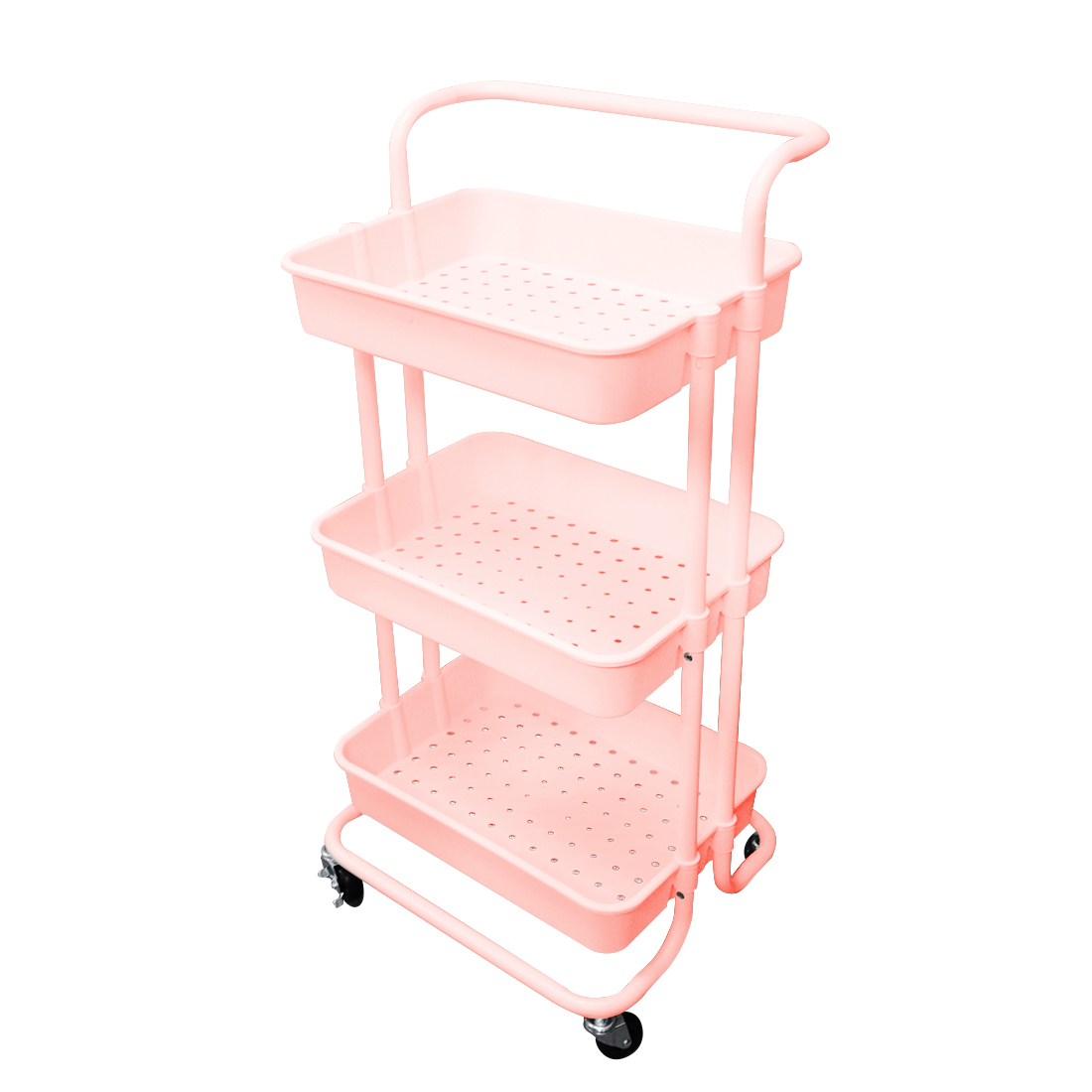 キッチンワゴン バスケットラック トローリー 3段 キッチン収納カート 移動式 キャスター付き 組立簡単 ピンク