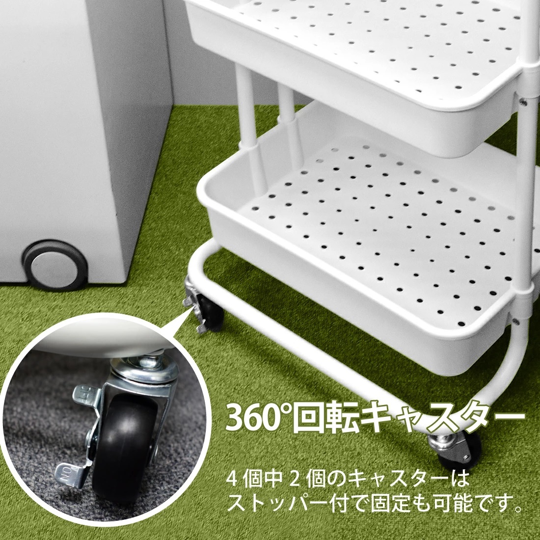 ・【キャスターとハンドル付きで移動便利】ハンドル付きで、移動時にもらくらく。片手でも移動できます。4つのキャスター付きで360°自由に回転し、方向転換もスムーズです。部屋の掃除などに面倒をかけません。キッチン・リビング・洗面所・寝室・トイレまでの整頓にも便利です。ブレーキ付きキャスターなので安心、安全です。