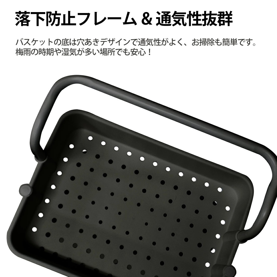 ・【落下防止フレーム付き&通気性抜群】落下防止フレーム付きで小物や割れ物等落下の心配がなく、安定感があります。使いやすさとデザイン性を両立させています。底板は穴あきデザインで通気性がよく、お掃除も簡単です。梅雨の時期や湿気が多い場所でも安心!