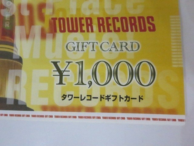 タワーレコード [タワレコ] ギフトカード 1,000円分 商品券 ギフト券 プレゼント CD DVD ビデオ 雑誌 ※折れ、多少の破れあり /未使用品