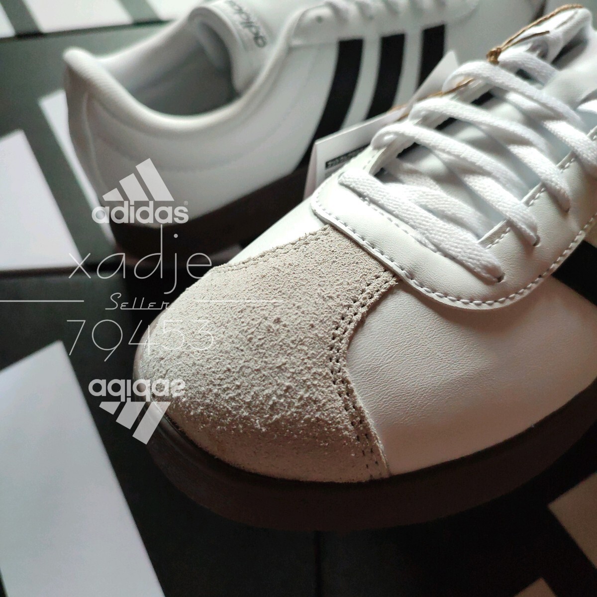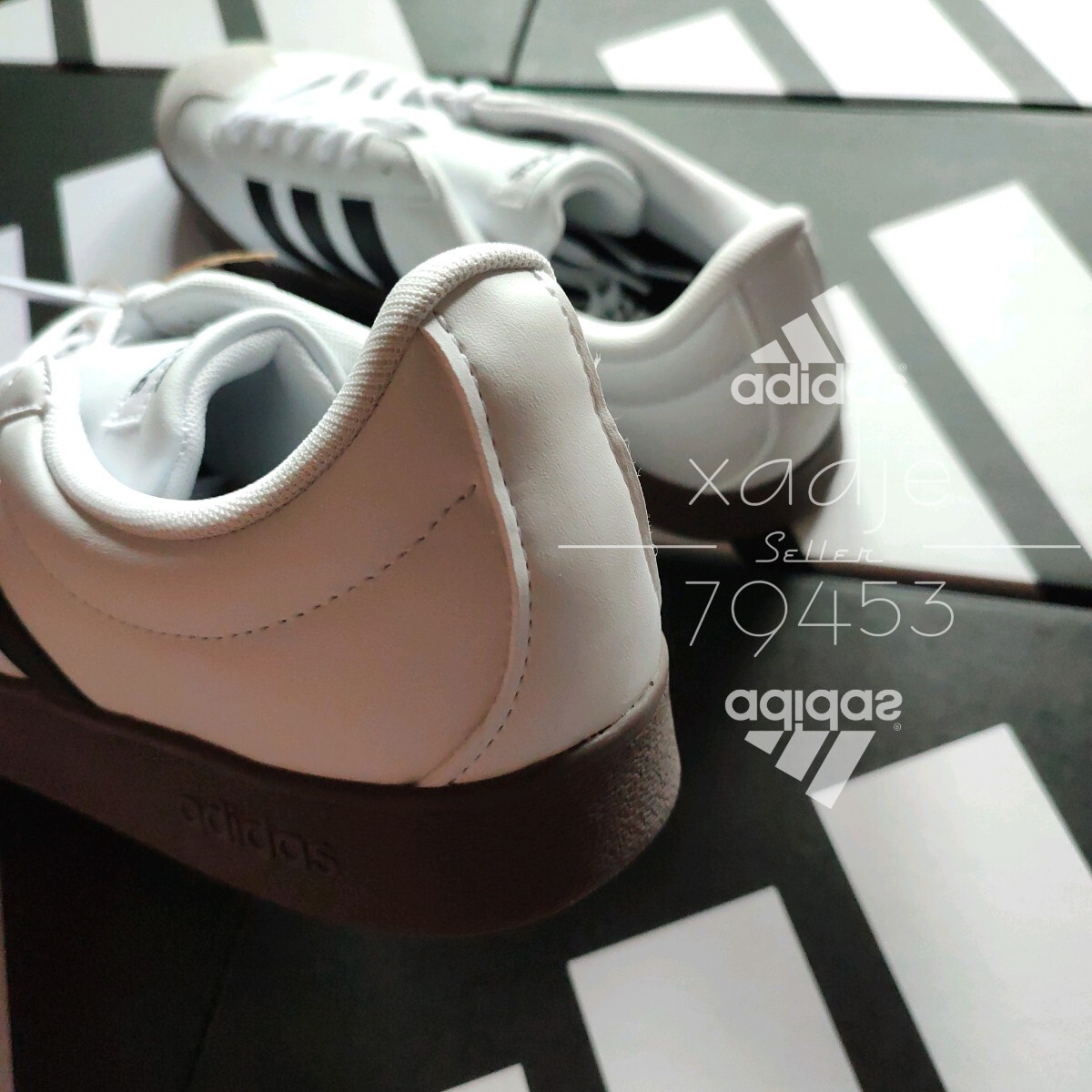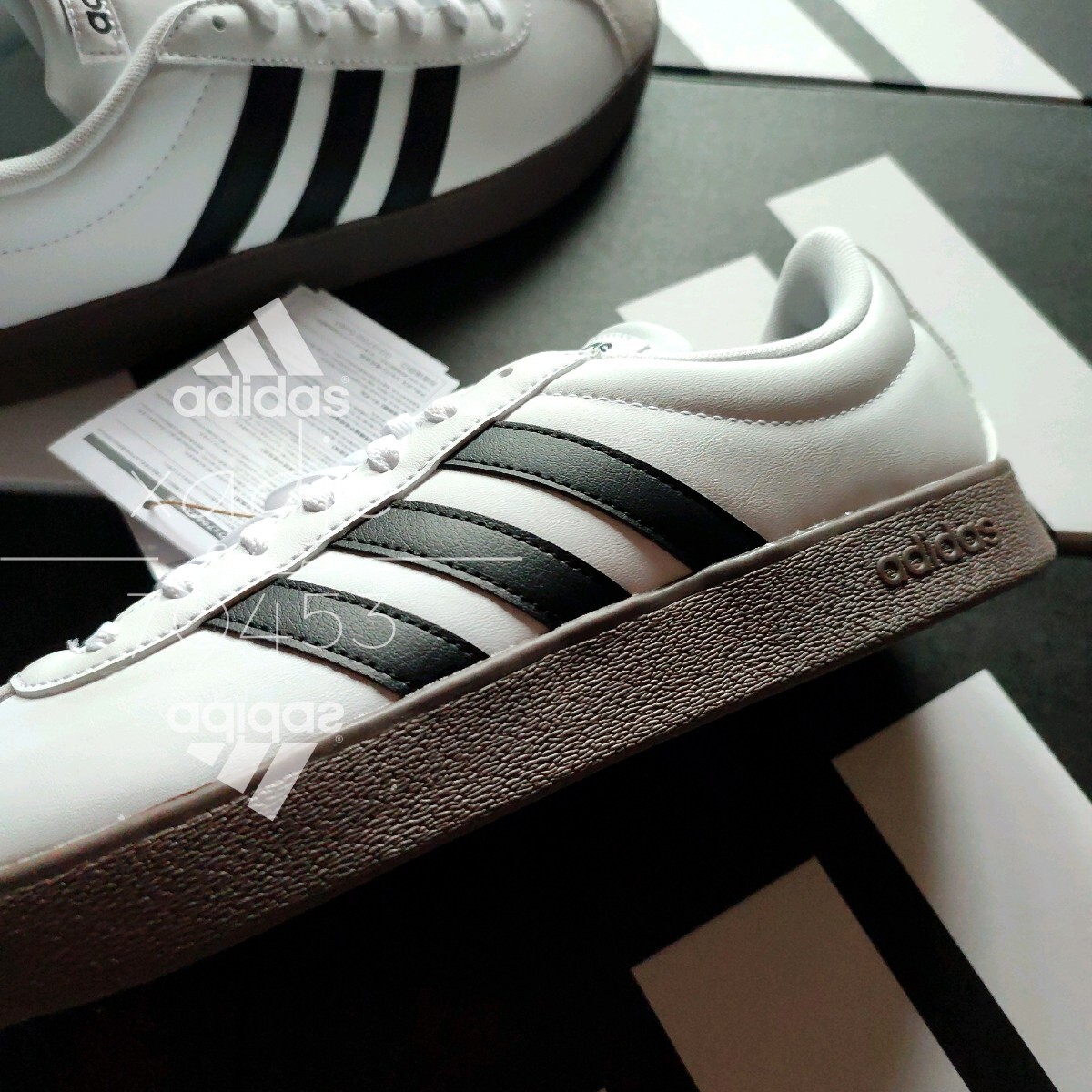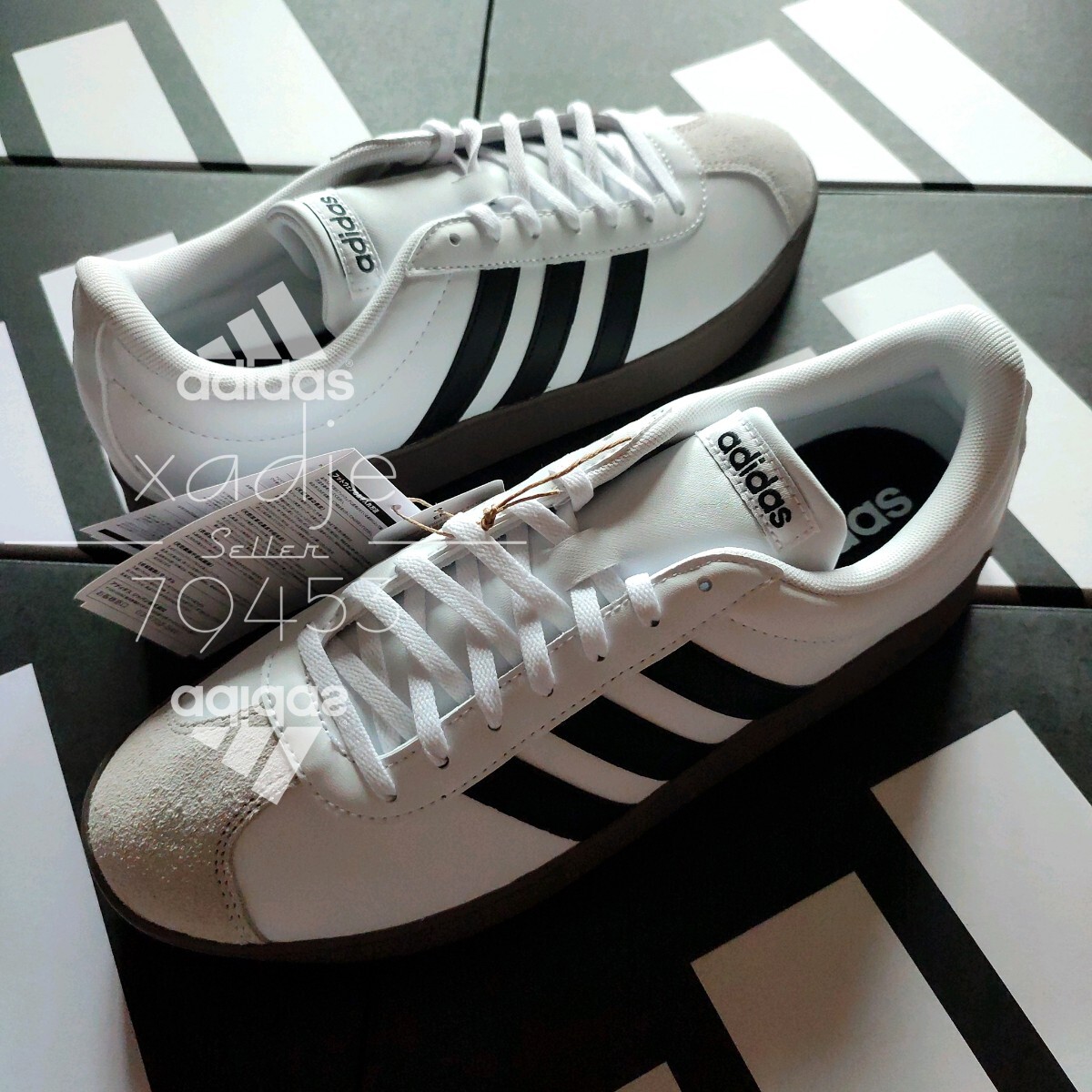 新品 正規品 adidas アディダス VL COURT BASE コート ベース 白 ホワイト 黒 ブラック ガムソール 箱付き 定価6600円 27cm US9