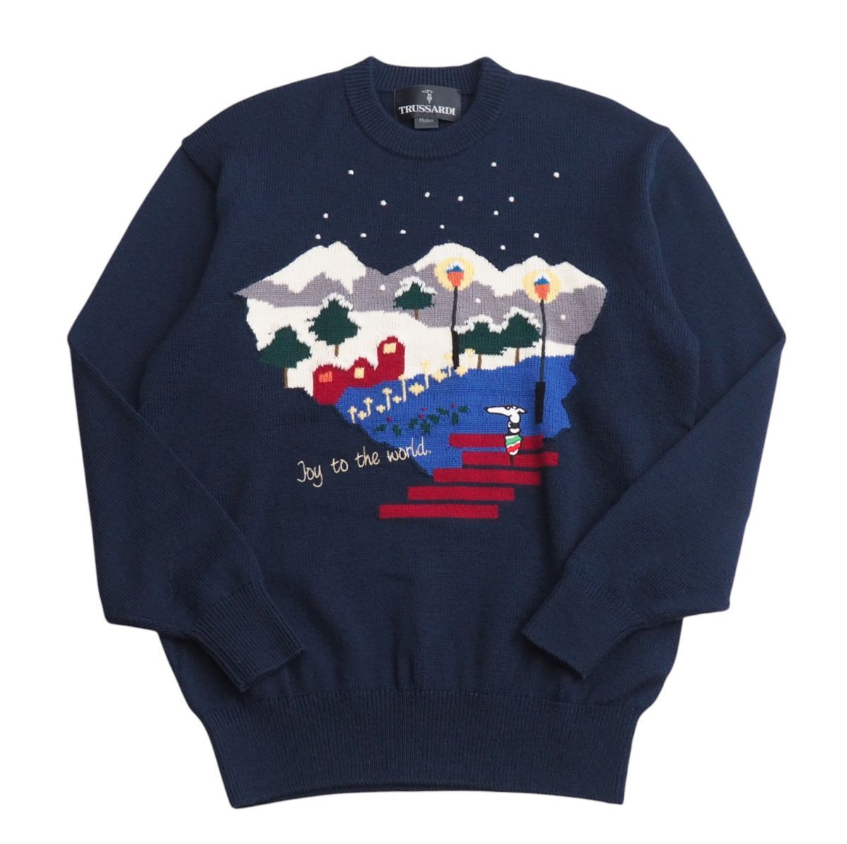 | GR5223▽90sヴィンテージ トラサルディ TRUSSARDI メンズ クルーネック ウールニット セーター ネイビー系 刺繍 ワッペン | |||