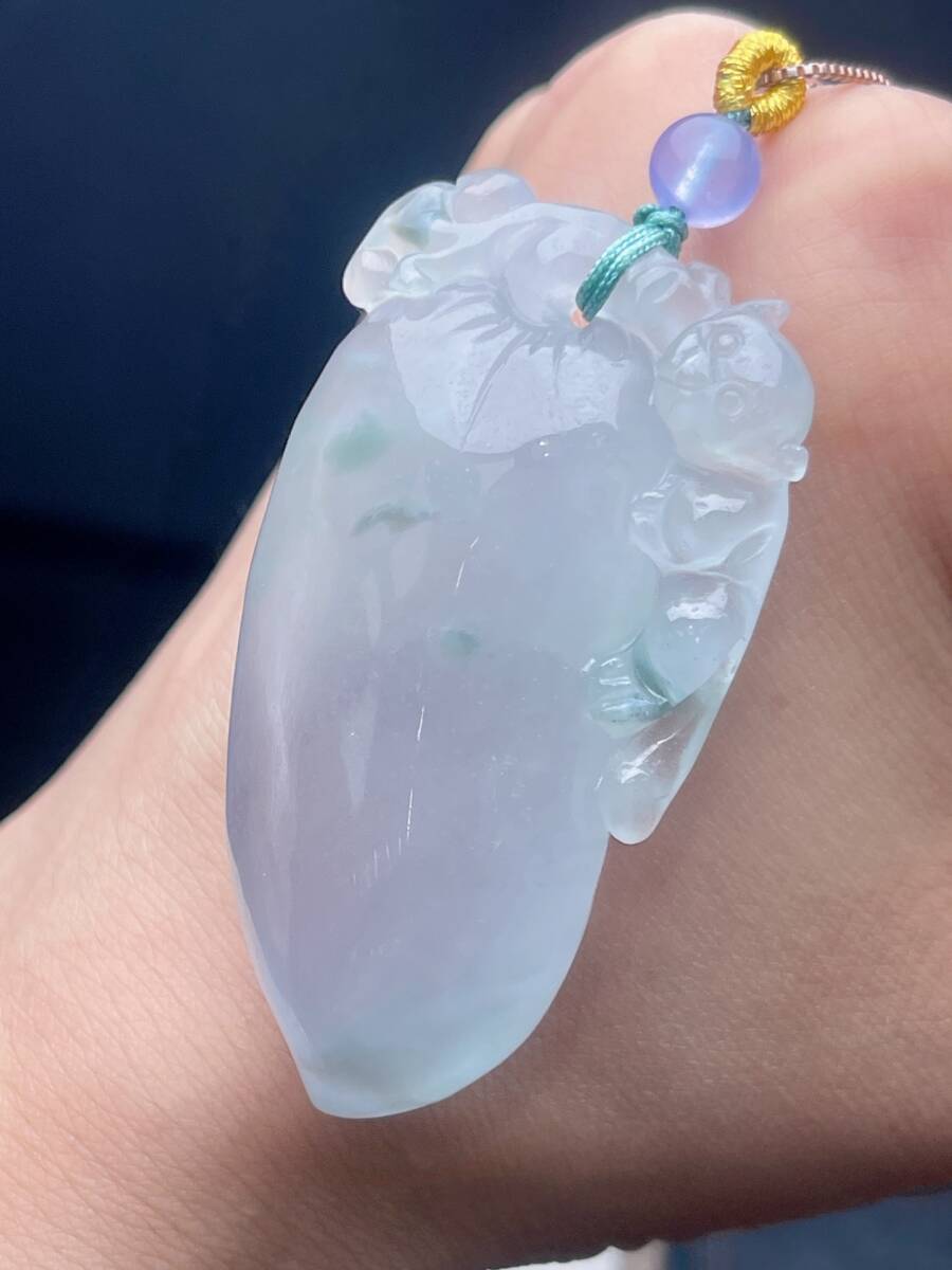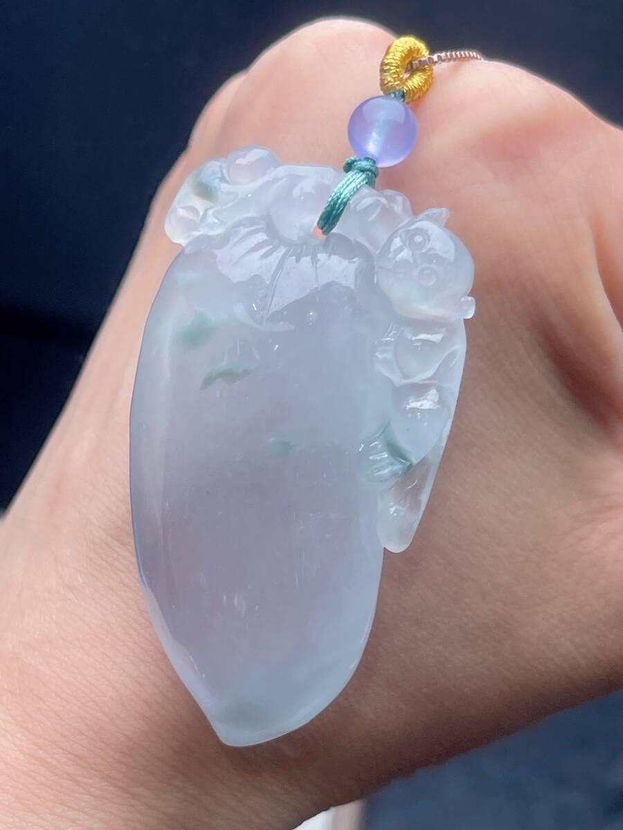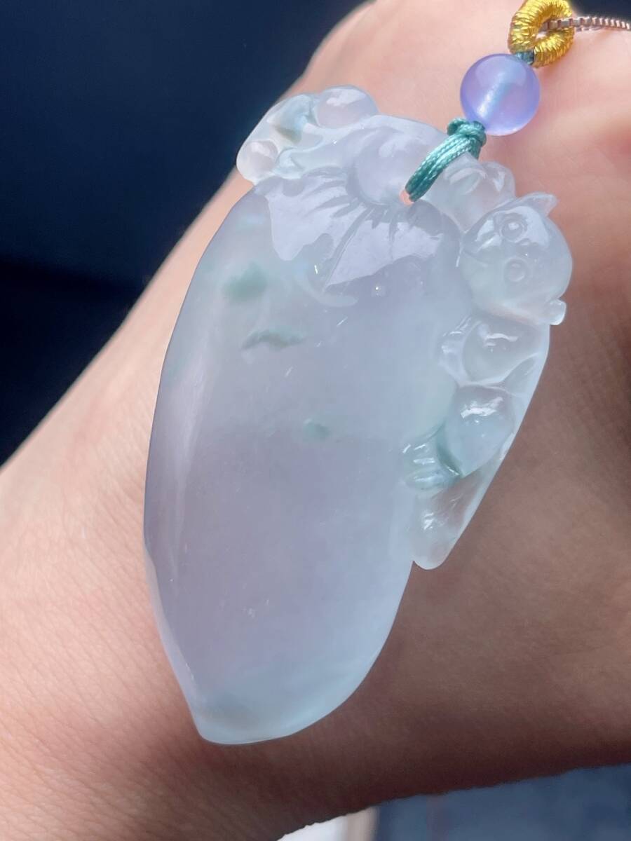Aグレード翡翠彫 清時代 高氷翡翠冰種飄花福瓜吊墜 吊墜 首飾 時代物 古董品 骨董 旧家蔵出し 唐物 中国古玩 古美術品102