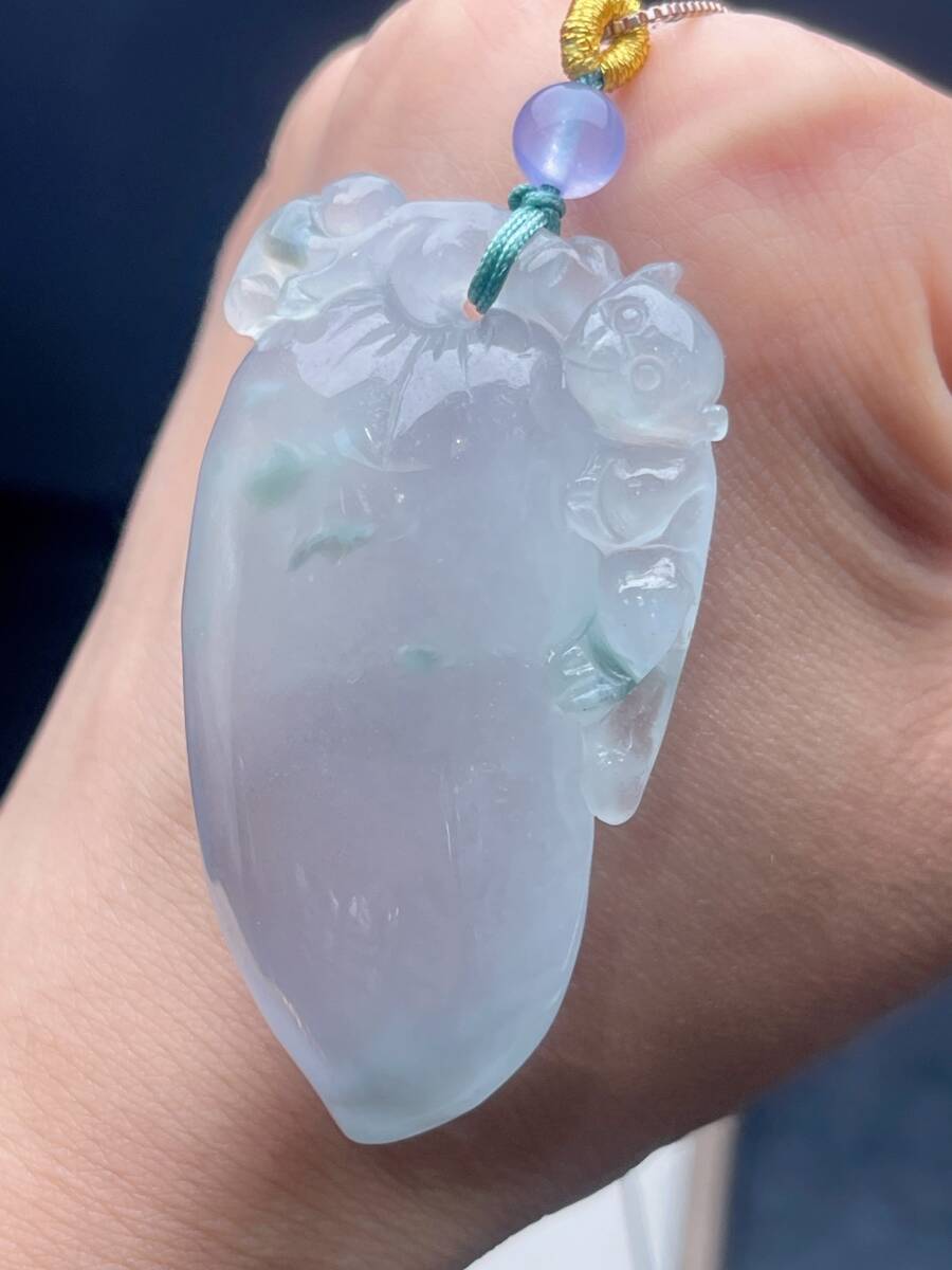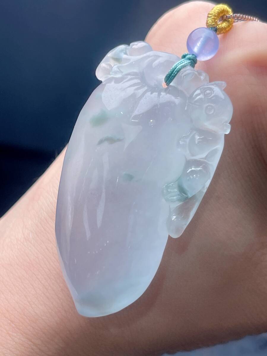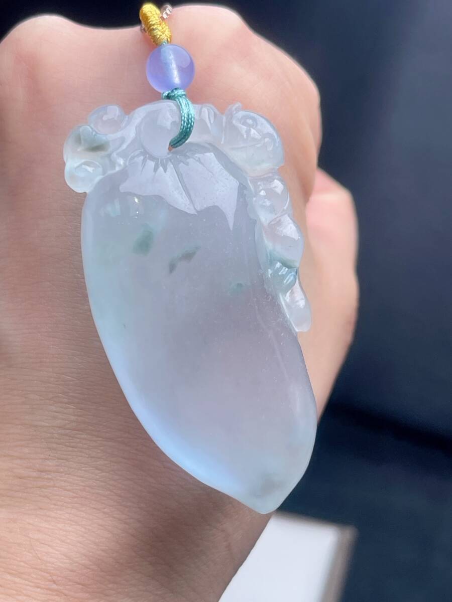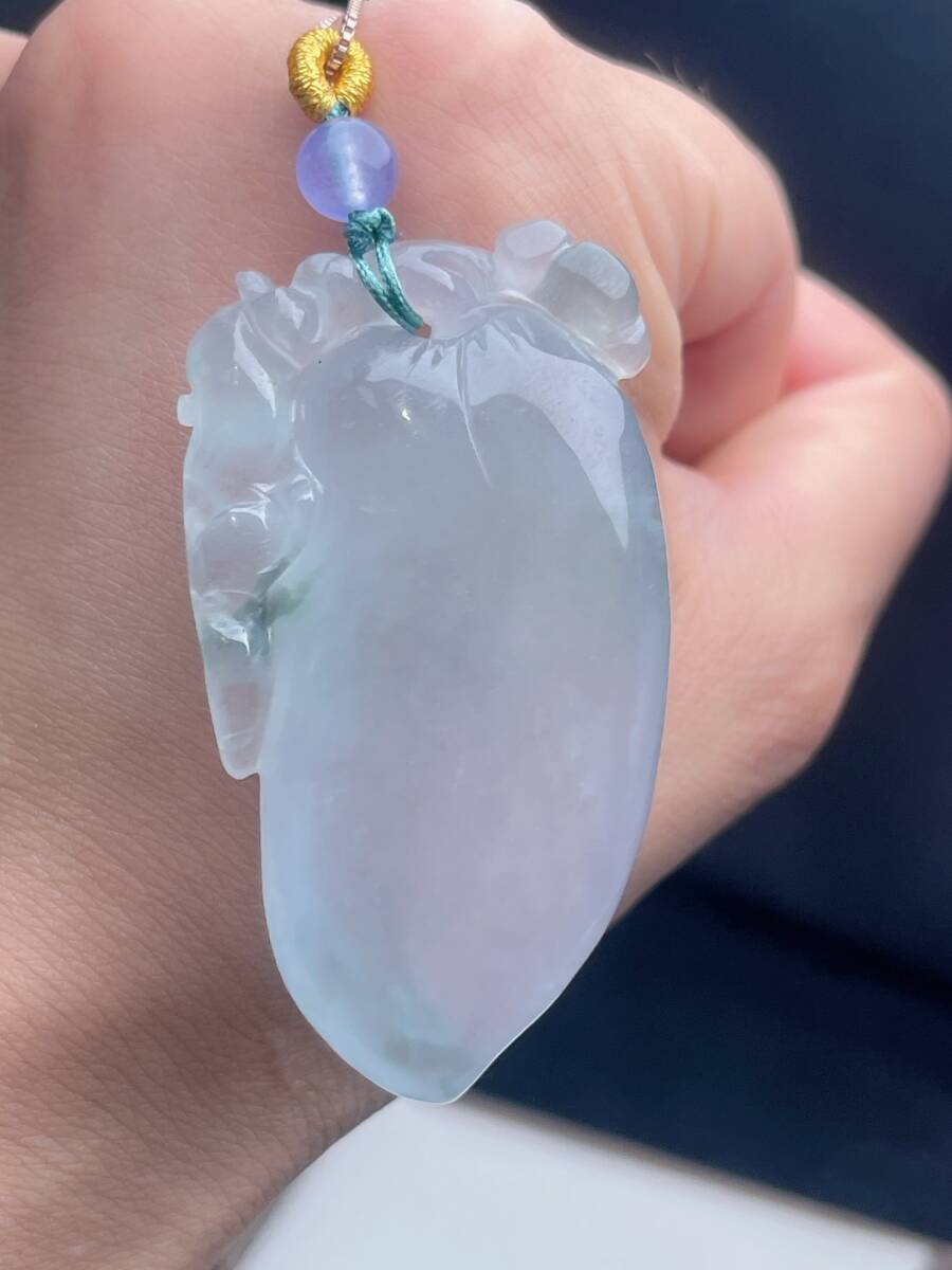 Aグレード翡翠彫 清時代 高氷翡翠冰種飄花福瓜吊墜 吊墜 首飾 時代物 古董品 骨董 旧家蔵出し 唐物 中国古玩 古美術品102