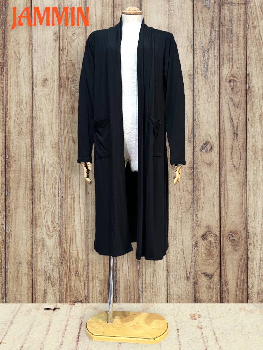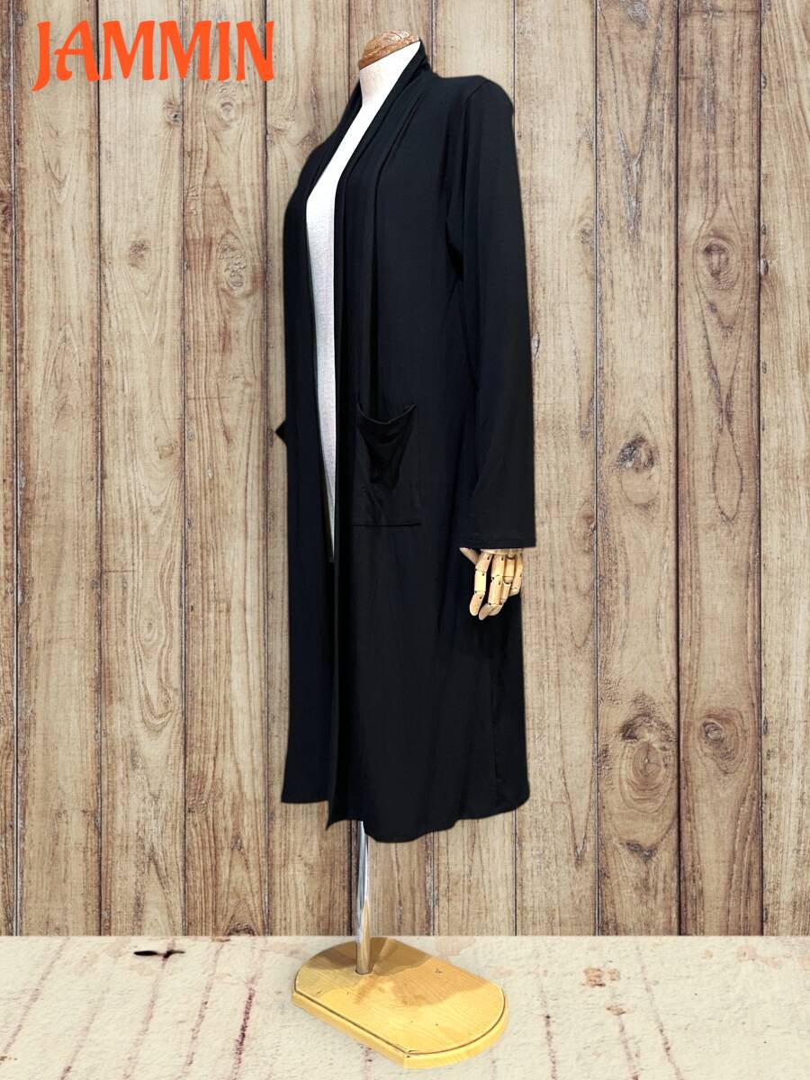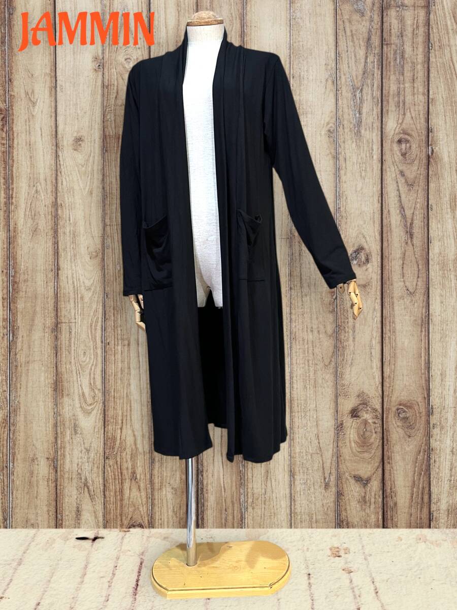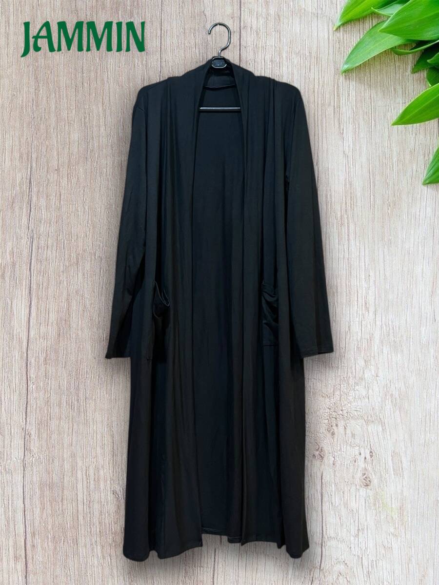 ストレッチロングカーディガン 黒 スパンデックス アジアン エスニック