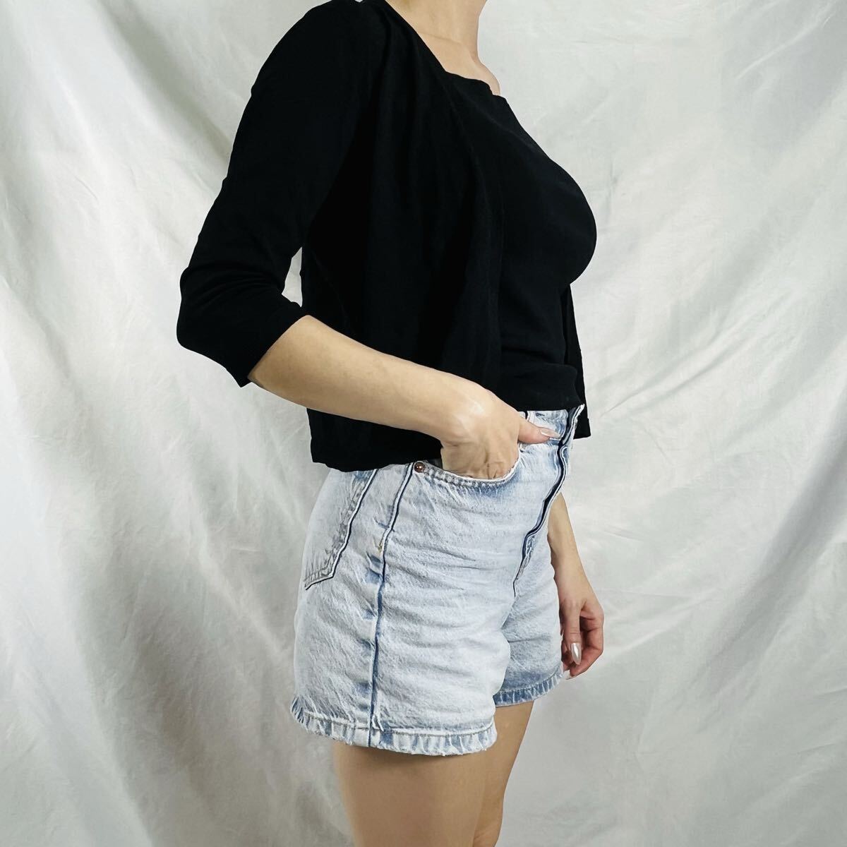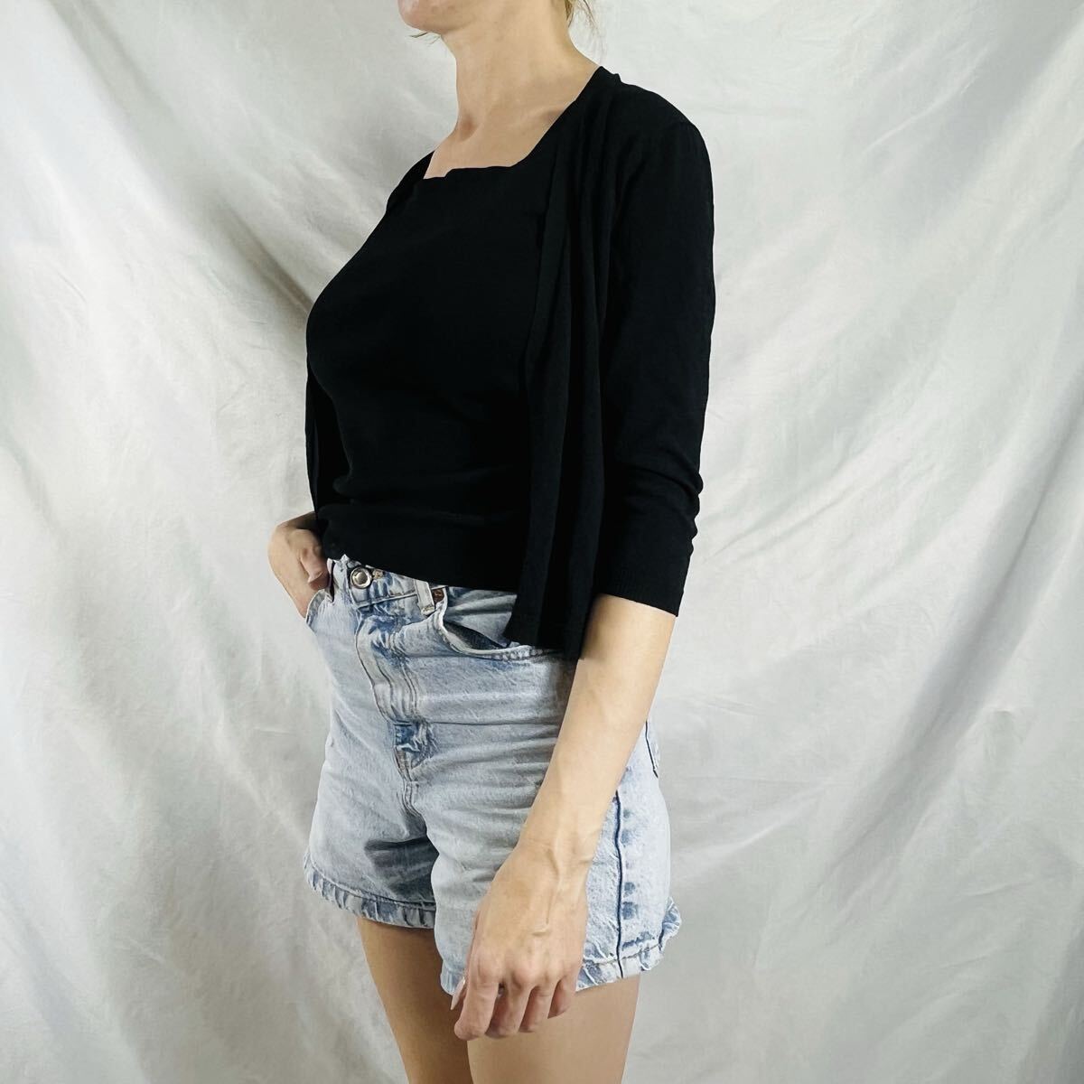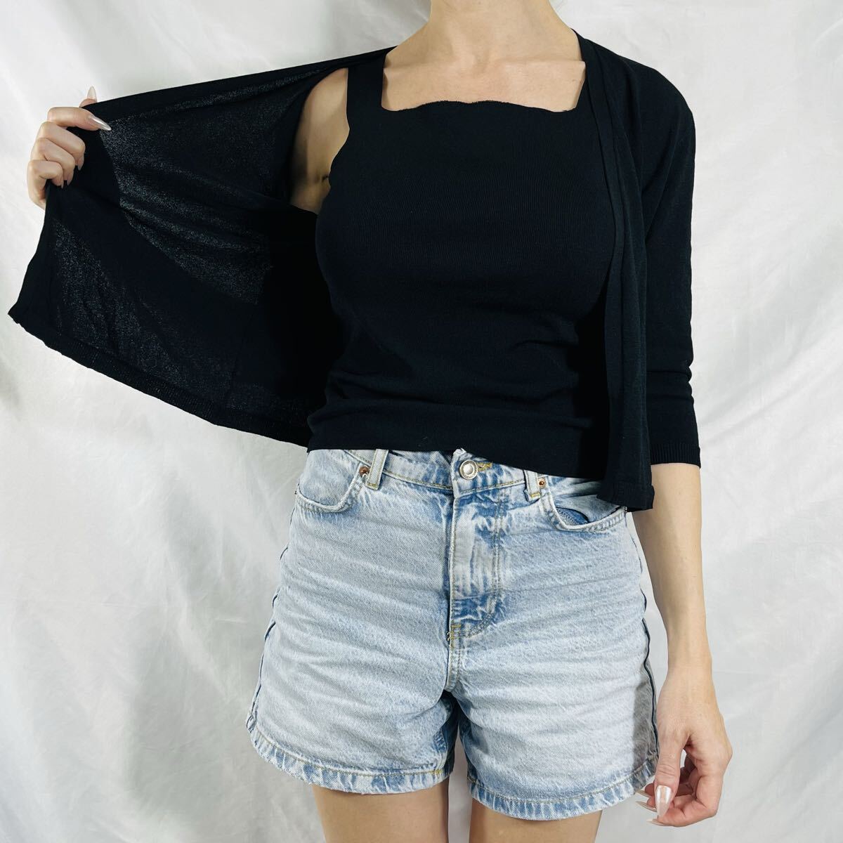 ・シンプルで洗練されたデザインの黒いカーディガン。