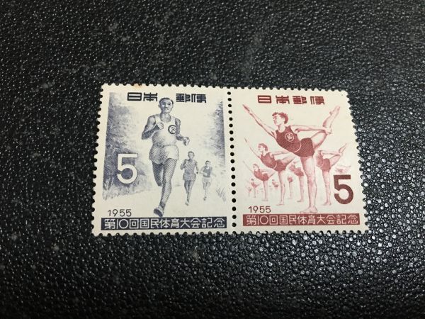 1410 未使用切手 第10回国体 ロードレース・マスゲーム 1955.10.30.発行 記念切手 国体切手 日本切手 郵便切手 人物切手 即決切手