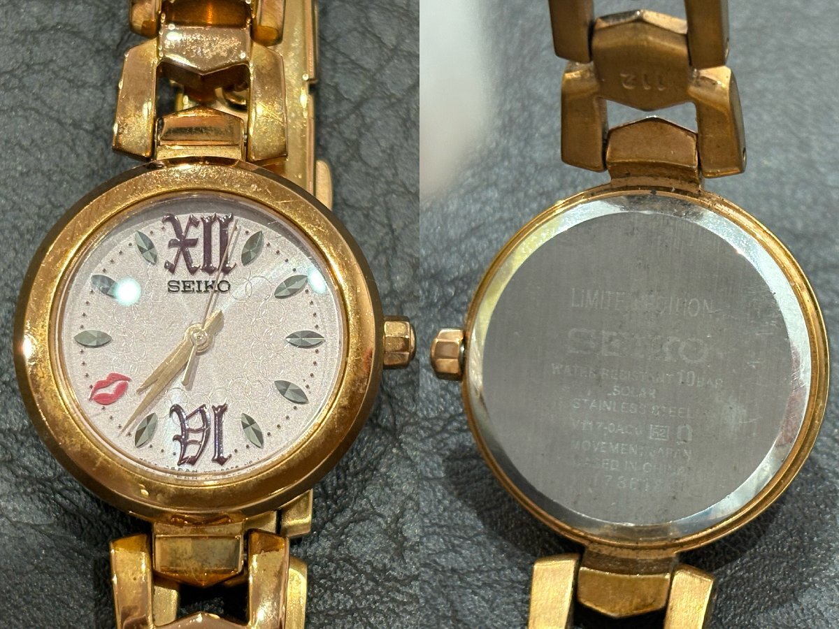 商品説明 | 商品をご覧いただき、誠にありがとうございます。 ○商品名○ 1円スタート セイコー シチズン カシオ クォーツ ソーラー シーン ルキア ウィッカ 等 レディース 時計 6点 現状品 ○商品詳細○ ・仕様:クォーツ時計 ソーラー時計 ・型番:V117-0AC0、1N01-0CD0、E031-S085667、E031-R010298、5930-S029112、SHE-4506 ・付属品:なし 状態【B】 N→新品 S→未使用品、新古品 A→超美品(数回程度の使用) AB→多少の小傷や汚れはあるが、程度の良い美品 B→一般的な使用感のある中古品 C→使用感が大きい中古品(傷や汚れ大) D→ジャンク品 ※弊社独自の指標となります。 ※必ず写真で商品状態のご確認を、お願い致します。 ○特筆事項○ ソーラー時計の中には稼働しているものがございますが、長期稼働の確認をしているわけではありません。 電池切れのものは稼働未確認の現状品です。 あくまで全て現状品での出品となりますので、ご了承の上でご入札ください。 ○返品に関して○ イメージと違う、サイズが合わない等、お客様のご都合による返品はお受けできません。必ず商品詳細と写真をご覧ください。ただし、以下の条件が当てはまる場合に限り、返品をお受けいたします。 ・お届けした商品が、ご注文の商品と違った場合 ・弊社が誤って規格表示した場合 ・運送事故による破損・欠品が発生した場合 ※商品到着後、5日以内にご連絡頂いた場合のみご返品にてお受けさせて頂きます。 ○各種注意事項○ 【記念硬貨・貨幣の場合】 ※お支払い方法は「コンビニ支払い」「銀行振込」のみとなります。あらかじめご了承の上、ご入札くださいませ。詳しくは下記URLをご参照ください。 https://support.yahoo-net.jp/PccAuctions/s/article/H000013378 【5点以上のまとめ・セット売り商品の場合】 ※商品に関するお問い合わせに関しまして詳細なものはお答えできかねますので、ご了承ください。(例:香水・コスメの容量、アクセサリーの素材など) 【適格請求書(インボイス)が必要なお客様】 ※落札後、メッセージにてその旨をお伝えください。ご連絡がない場合は基本的に添付致しませんのでご注意ください。 【商品の同梱発送をご希望のお客様】 ※落札後、メッセージにてその旨をお伝えください。ご連絡のタイミング次第では同梱できないこともございますのでご了承ください。 ※なお、商品の取り置きはご連絡いただいた日から2日間までとさせていただきます。期限を過ぎますと順次出荷作業に移らせていただきます。 ※商品タイトルに「同梱不可」と記載のあるものは同梱できかねますのでご注意ください。また、記載のないものでも同梱できないものもございますので、あらかじめご了承ください。 |