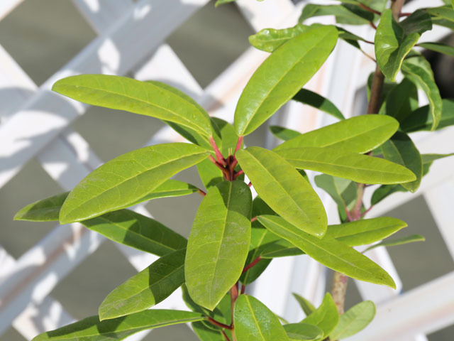 ユズリハは10m程度まで成長する常緑高木です。葉はらせん状につきます。若葉が出た後に古い葉が自然と落葉するためこの名前が付きました。そのため昔から正月などの飾りつけの縁起物として重宝されました。雌雄異株です。実は10~11月に黒紫色の1cm程度の実が多くなります。実には毒があり食用にはなりません。葉が大きく存在感があるため街路樹や庭木のアクセントに使われます。