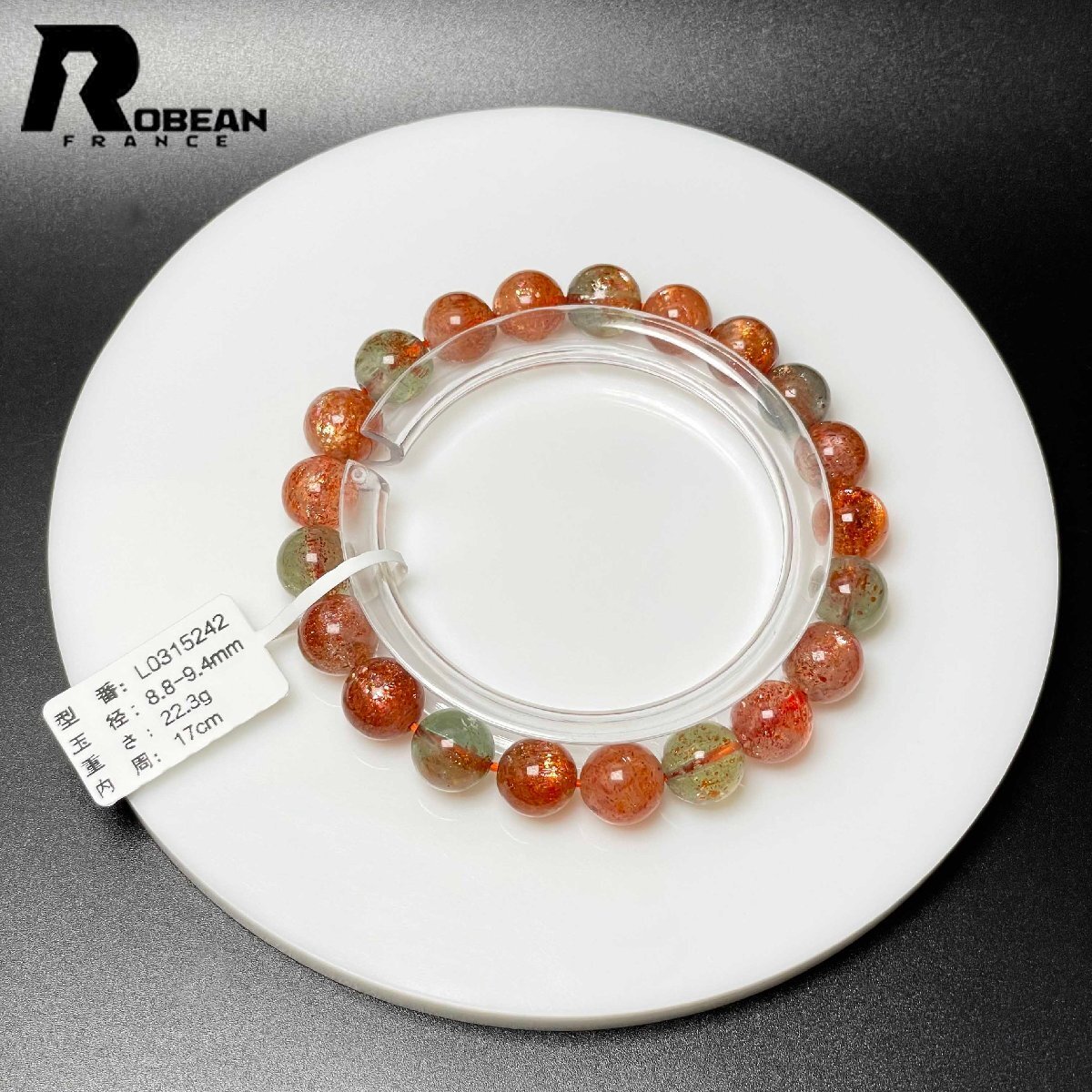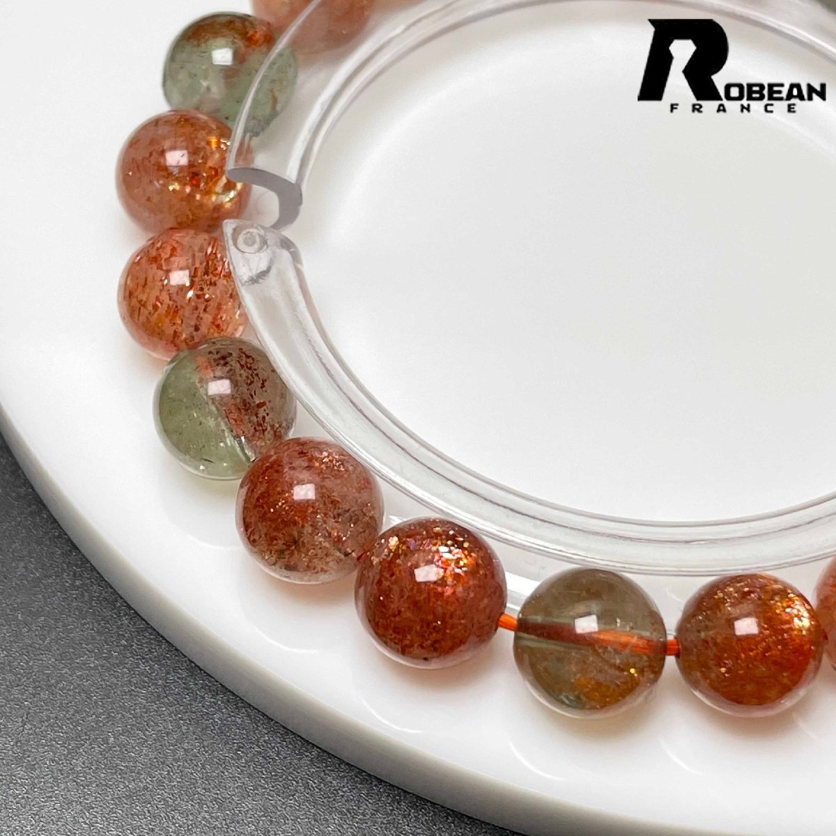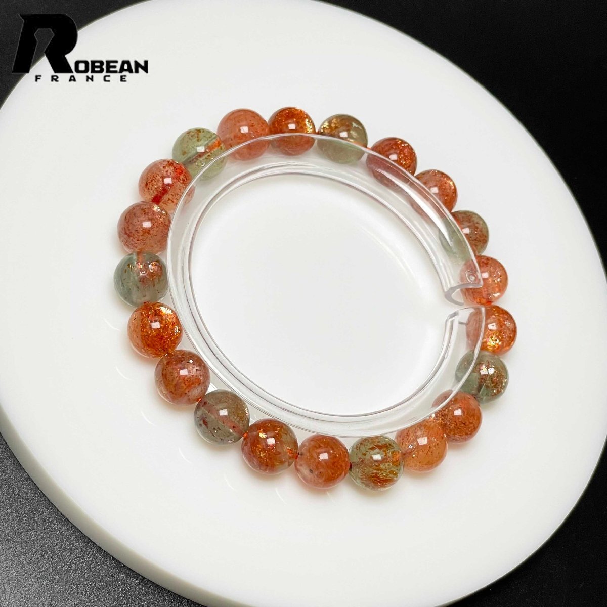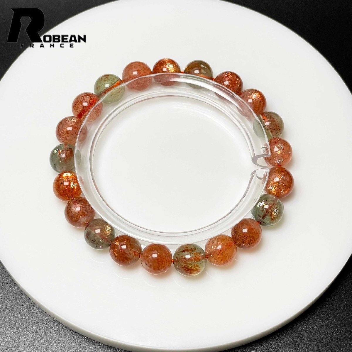絶賛 EU製 定価9万円★ROBEAN・ アルーシャサンストーン★共生鉱 パワーストーン ブレスレット 太陽石 数珠 お守り 8.8-9.4mm L0315242