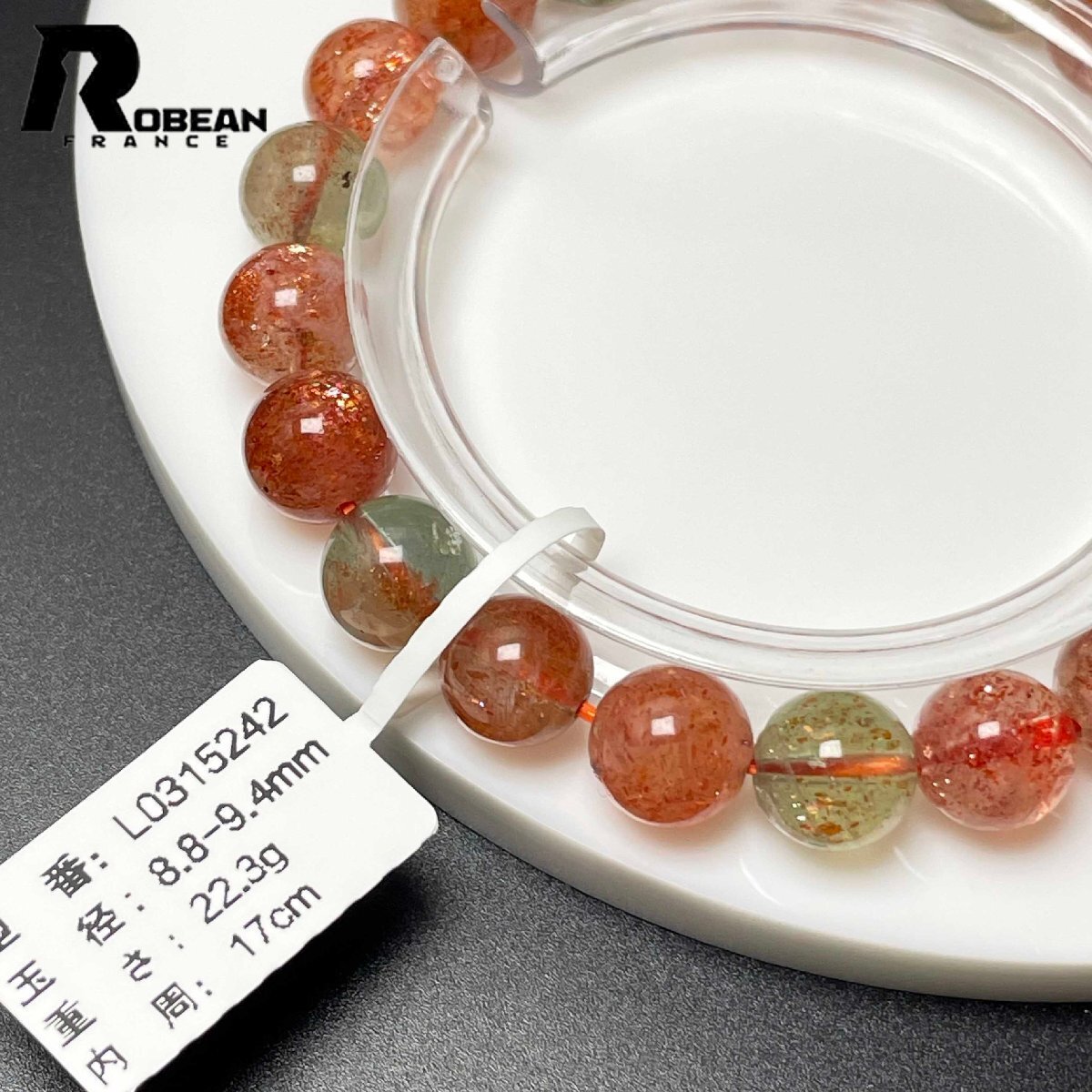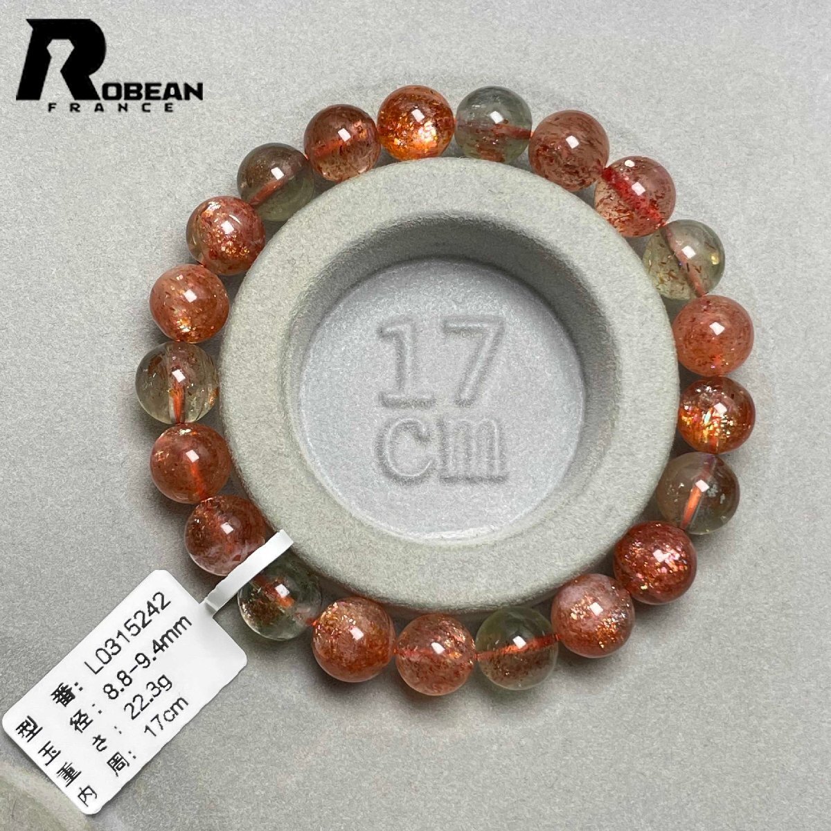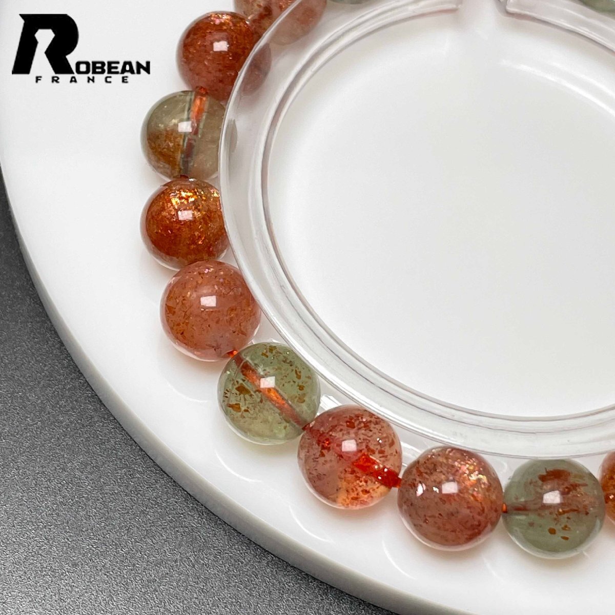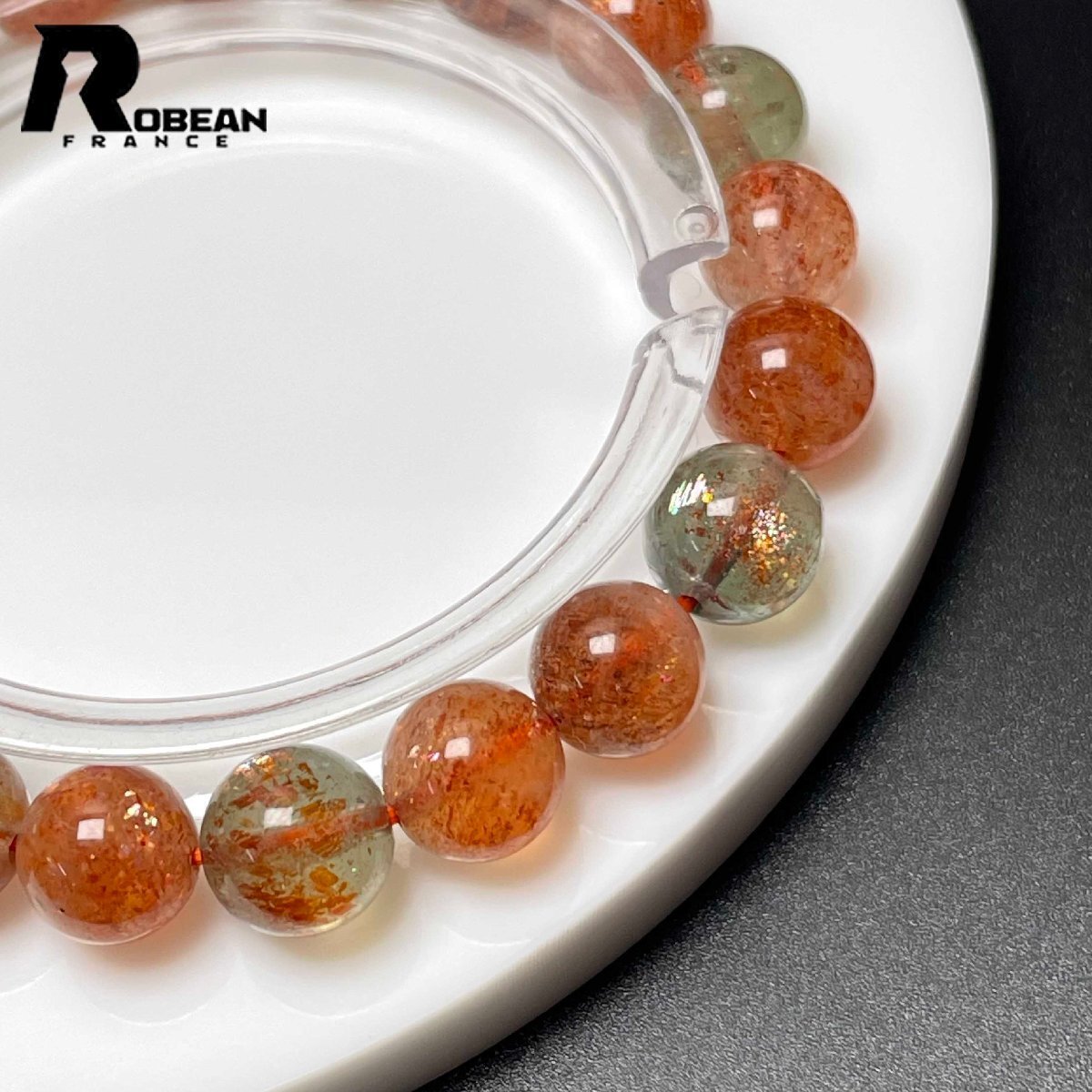 絶賛 EU製 定価9万円★ROBEAN・ アルーシャサンストーン★共生鉱 パワーストーン ブレスレット 太陽石 数珠 お守り 8.8-9.4mm L0315242