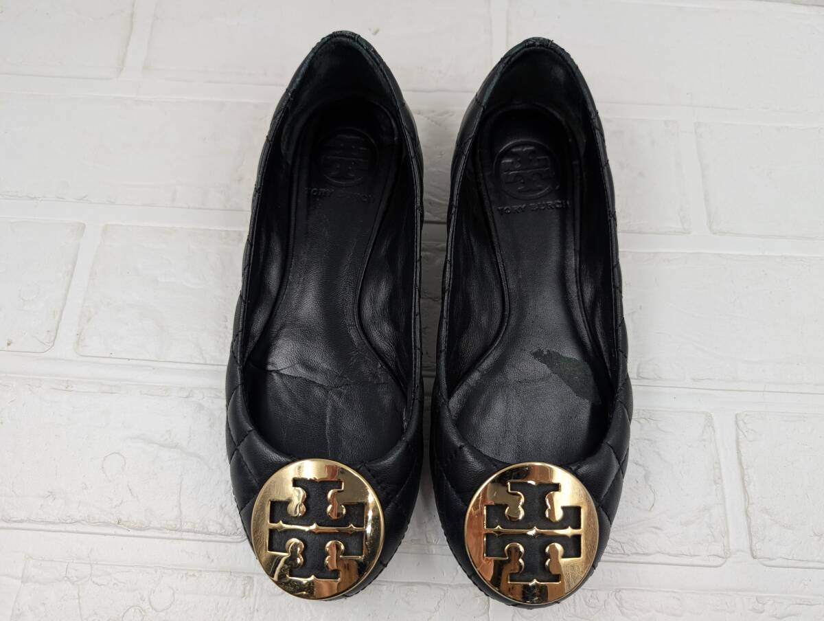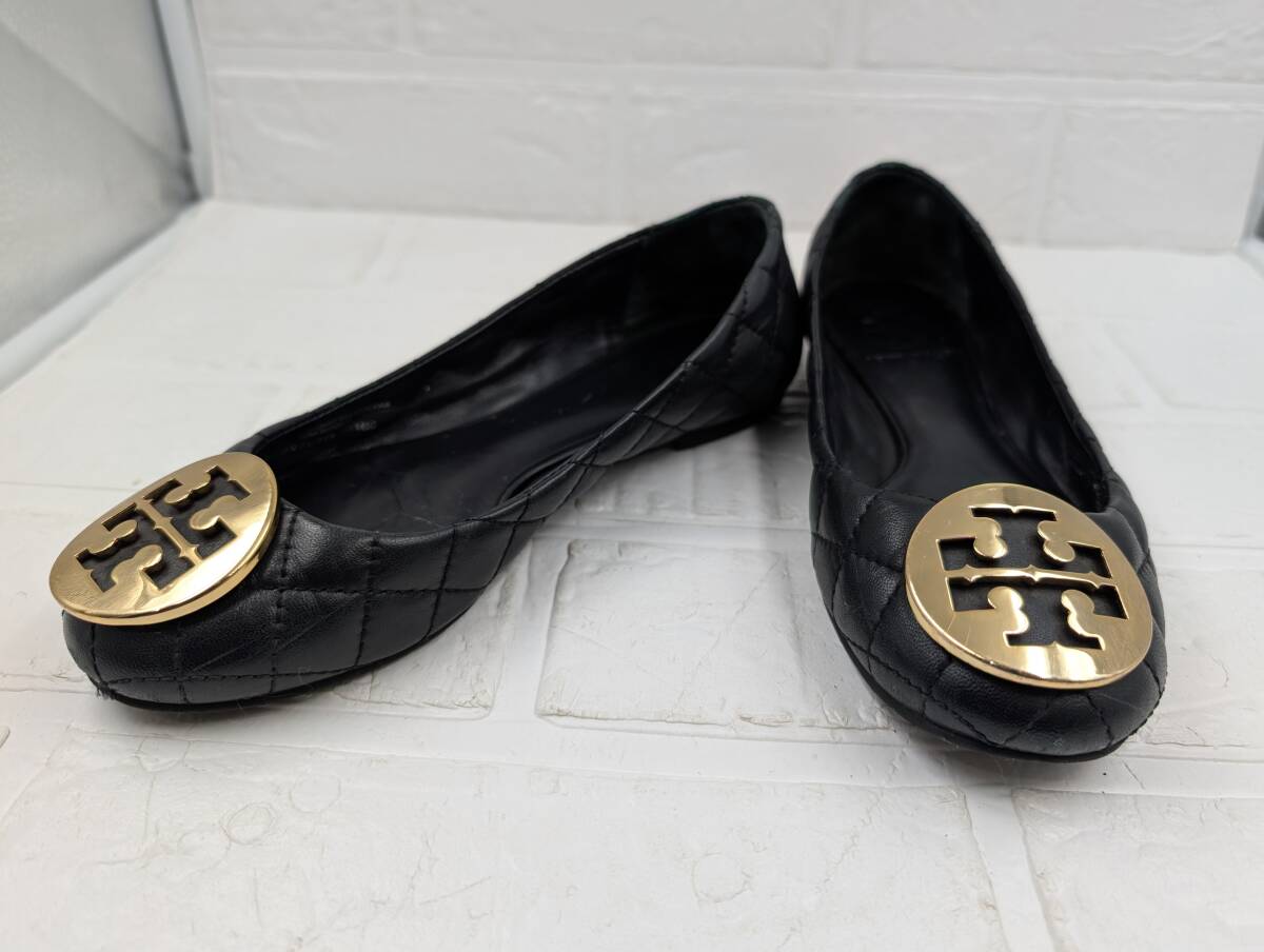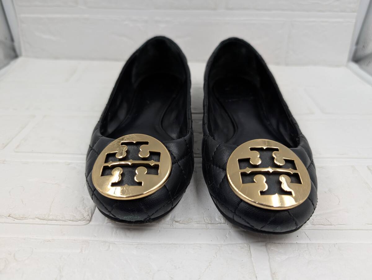 1000円~★ TORY BURCH トリーバーチ キルティング レザー バレエシューズ フラット パンプス サイズ5 22㎝ 黒 ★