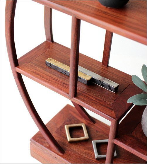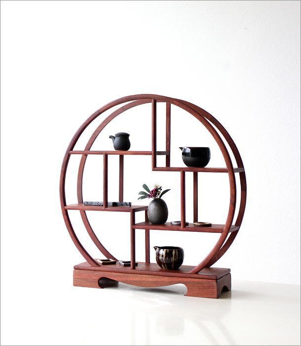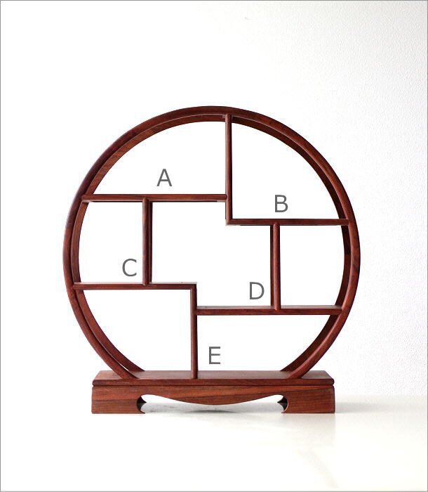 中国の伝統的なデザインの 骨とう品を飾るための小さな飾り棚 本来、茶器などを飾るものですが 小物やグリーンを飾って 和のインテリアとしても楽しめそうです シンプルな円形の木製棚は 段違いになった棚が 小物やグリーンを 更におしゃれに見せてくれそうです 玄関やお部屋が 手軽にシノワズリな雰囲気に・・・ 木製の落ち着いたカラーは 和室にはもちろん シンプルな洋間にも似合いそうです 商品名 : 和のコレクション棚 丸 商品番号 : swa4239 全体のサイズ(cm) : 幅50×奥行13×高さ51 棚のサイズ : A・D)幅26×奥行11 B・C)幅21.5×奥行11 E)幅39.5×奥行11 材質 : 雑木 重量 : 1.7kg 生産国 : 中国 ※僅かながたつきが見られる場合があります ※棚の継ぎ目や隙間が見られることがありますが製造工程上出来るもので不良品ではございません ※ディスプレイによる色の違いはご了承下さい |