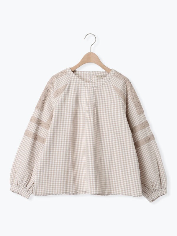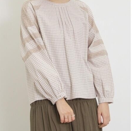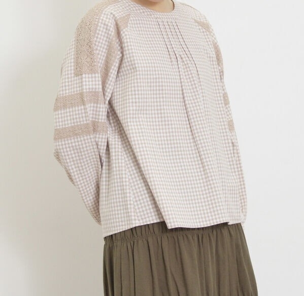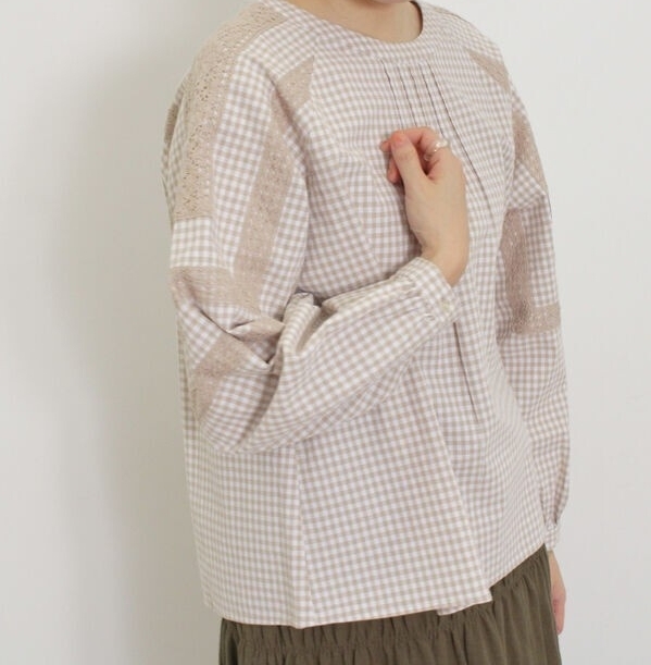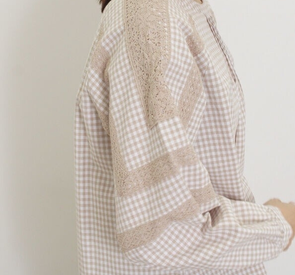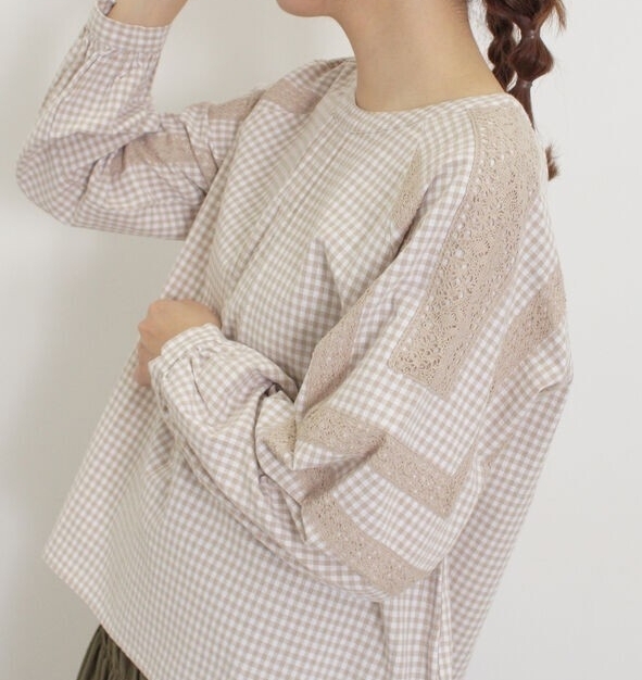 袖レースの貼り付けが甘さをプラスする柄アソートデザインのブラウス。