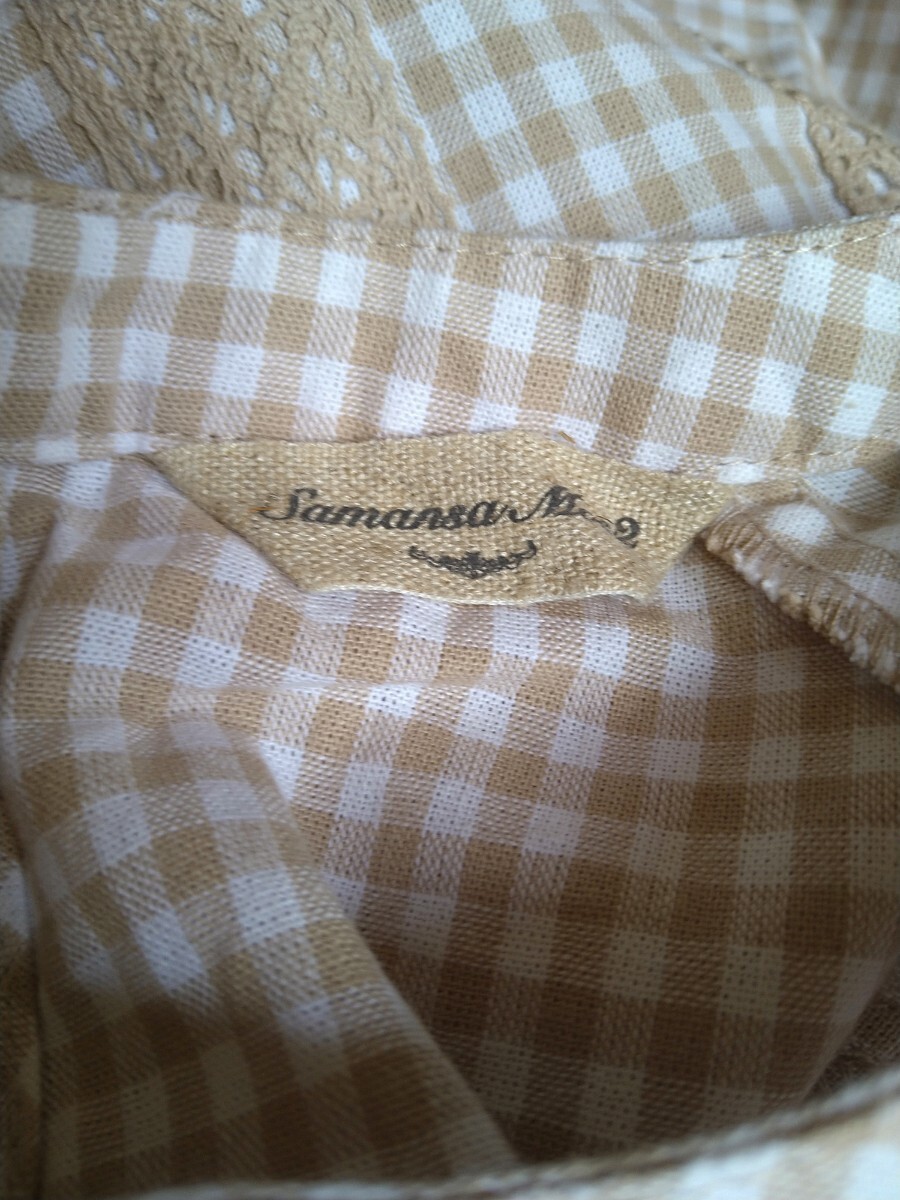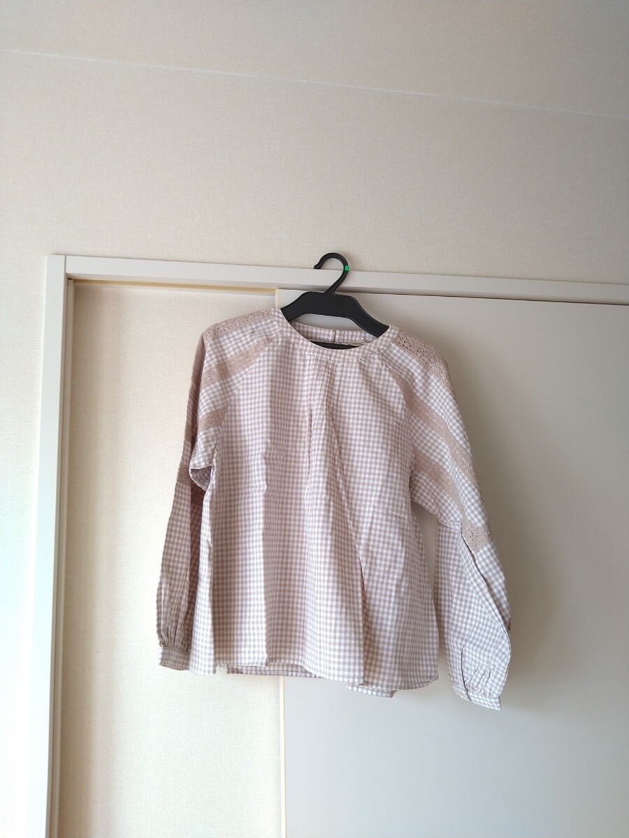 未着用か一回着用?(おそらく未着用)☆Samansa Mos2☆柄アソート袖レース貼りブラウス☆定価6050円☆フリー