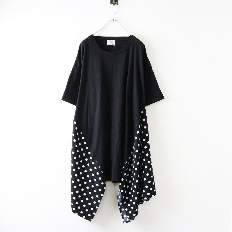 アズノゥアズ AS KNOW AS ドット切り替え プルオーバー カットソー |ブラック トップス 半袖 ブラウス【2400014629347】